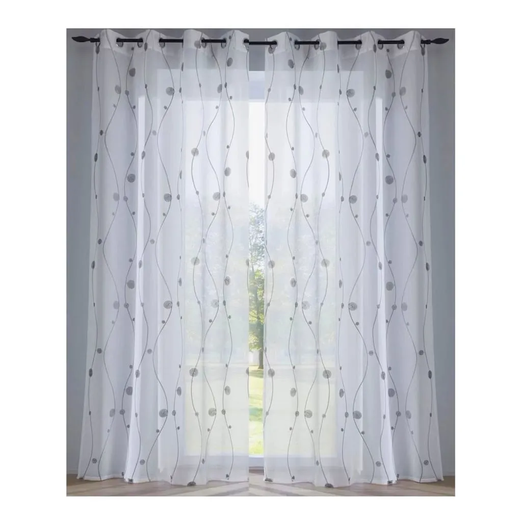 Декоративный магазин: прозрачный вуаль с современной вышивкой в виде кругов и лоз. С люверсами для карниза. 100% полиэстер. Можно стирать.