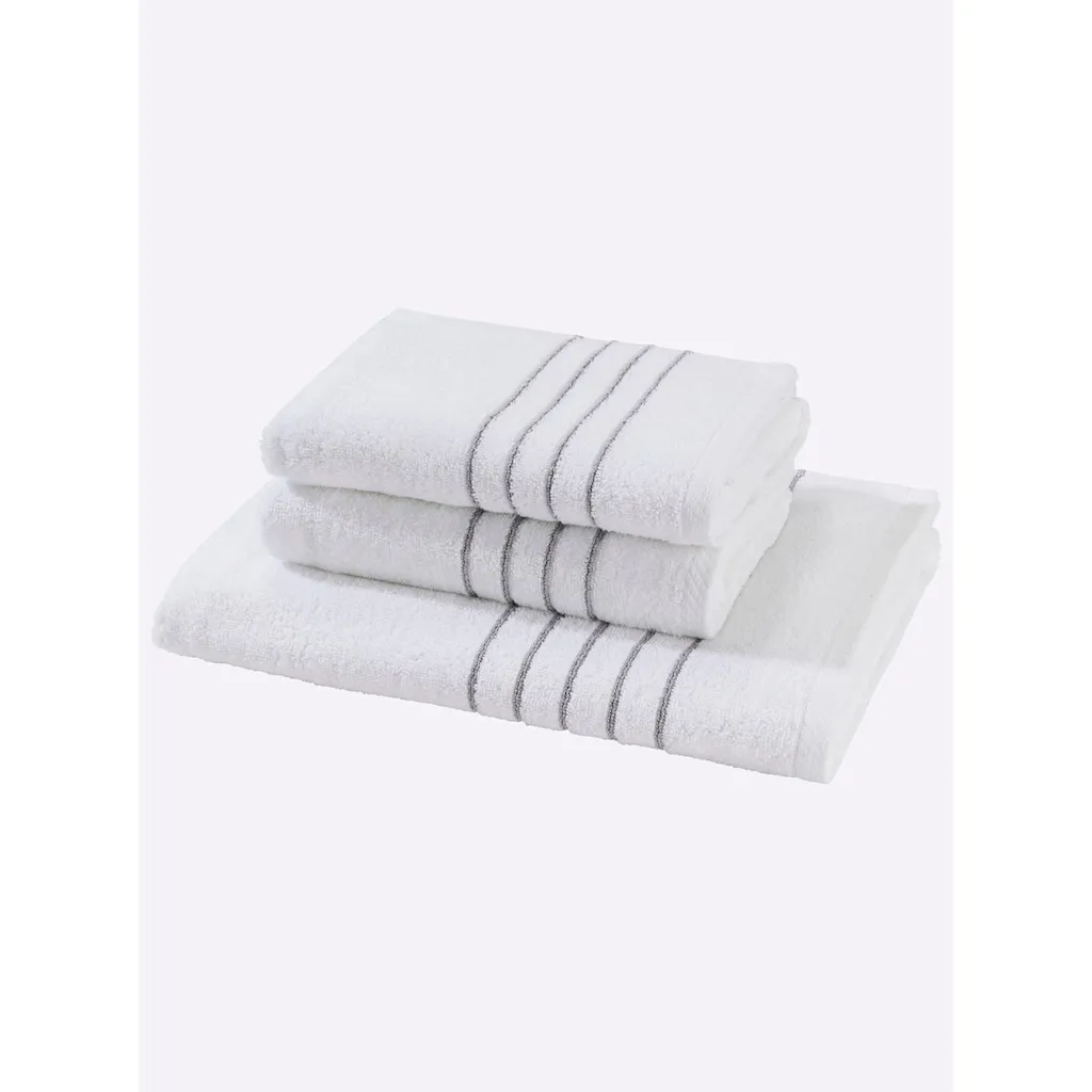 Очень универсально! Программа для полотенец из пушистого фротте, плотностью 420 г/м². С изящной полосатой каймой по краю. Также доступен в комплекте из 3 предметов для экономии, состоящем из 2 полотенец и 1 банного полотенца. Роскошное качество. 100% хлопок. Машинная стирка до 60 °C. Подходит для сушки в сушильной машине.
