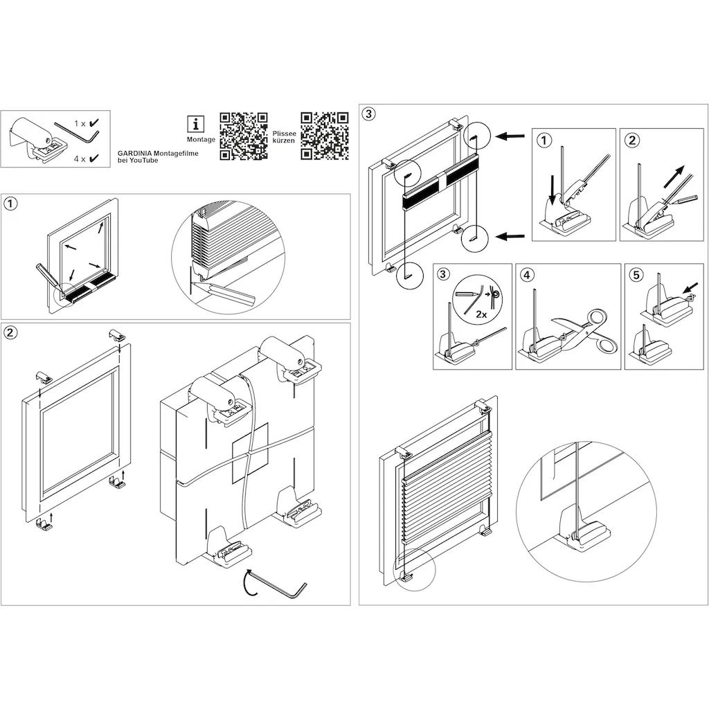 Простая установка плиссе на окно, совместимо с плиссе CONCEPT от GARDINIA, материал: пластик и металл