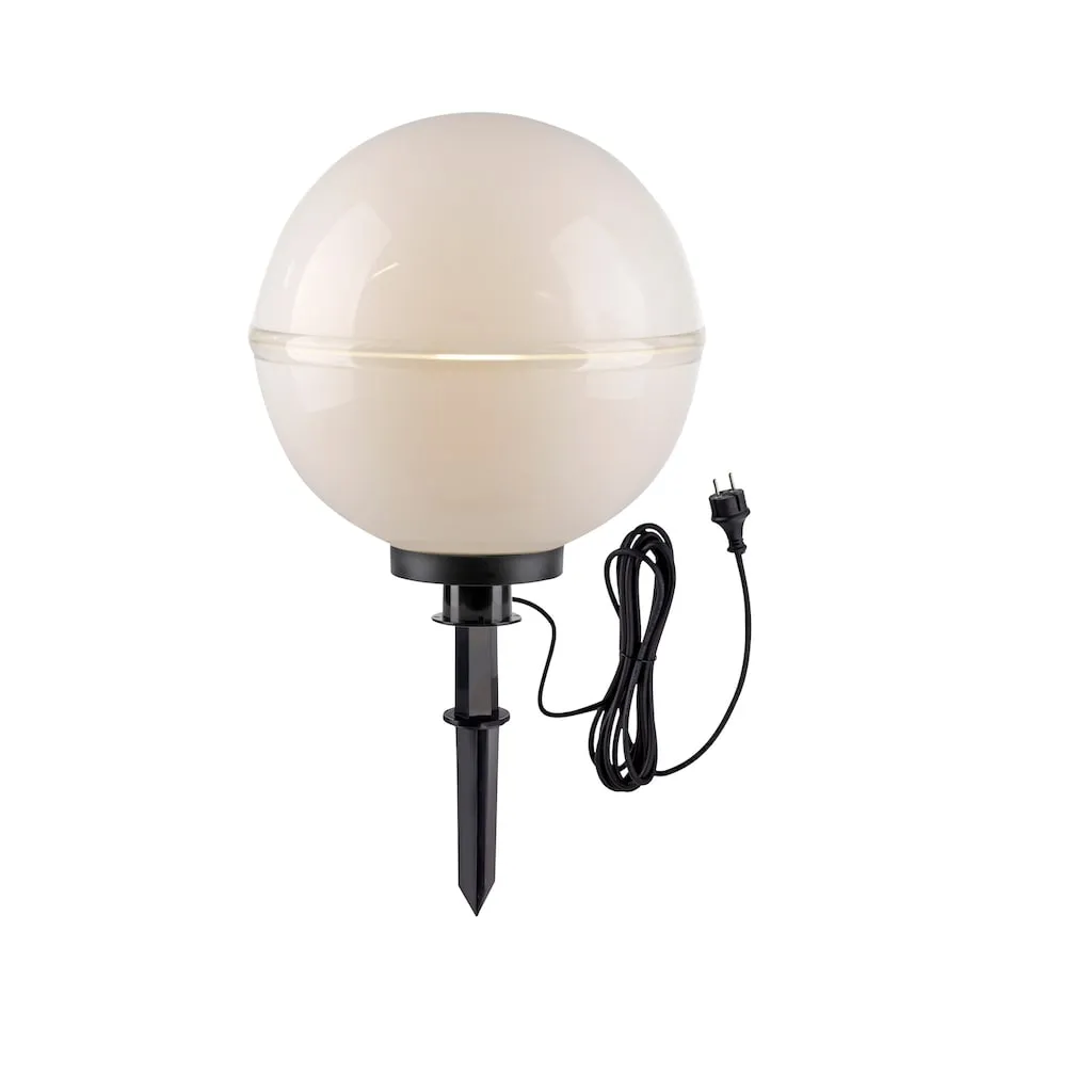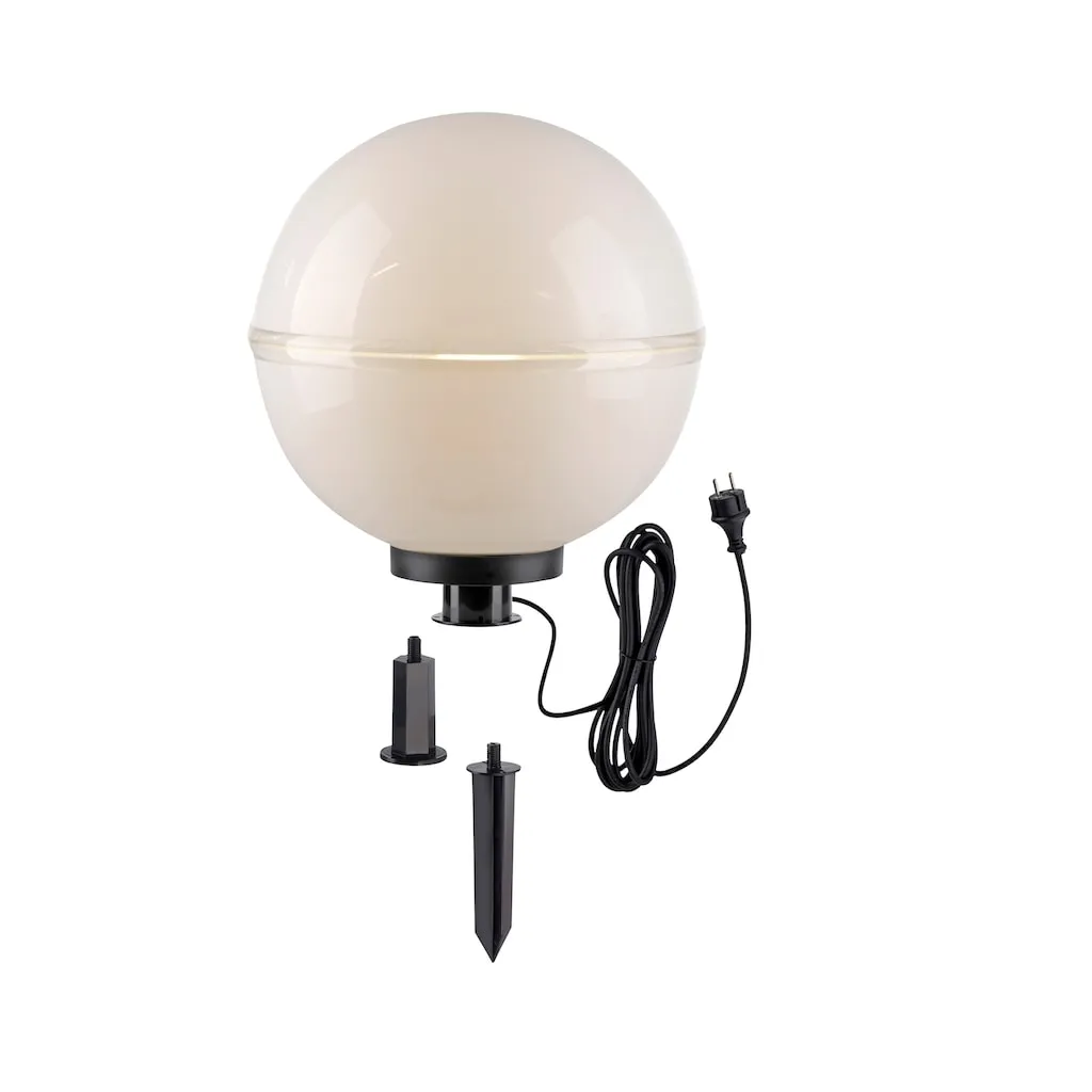 Включая заземляющий штырь, IP44 - защита от брызг, 5 м подводящий кабель, шар из прочного пластика, белый, прозрачное кольцо удерживает обе половины шара