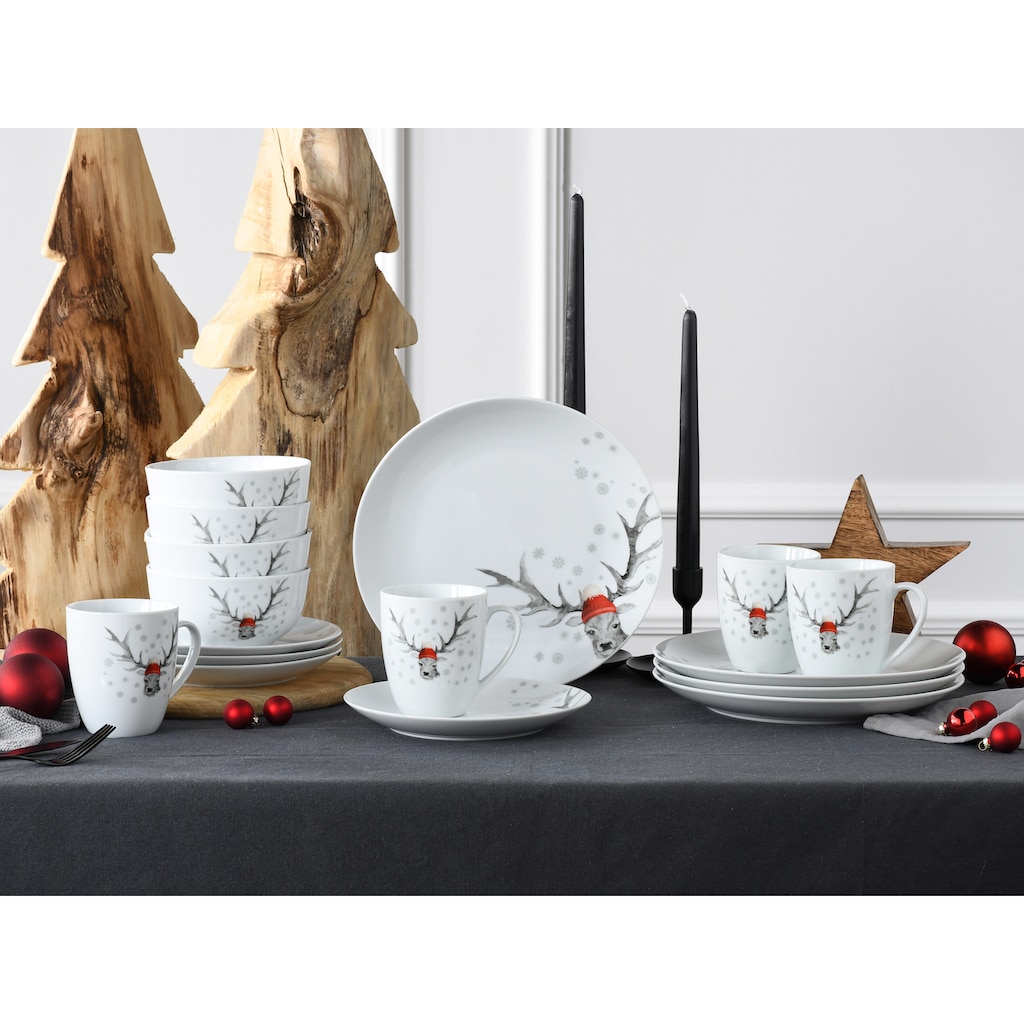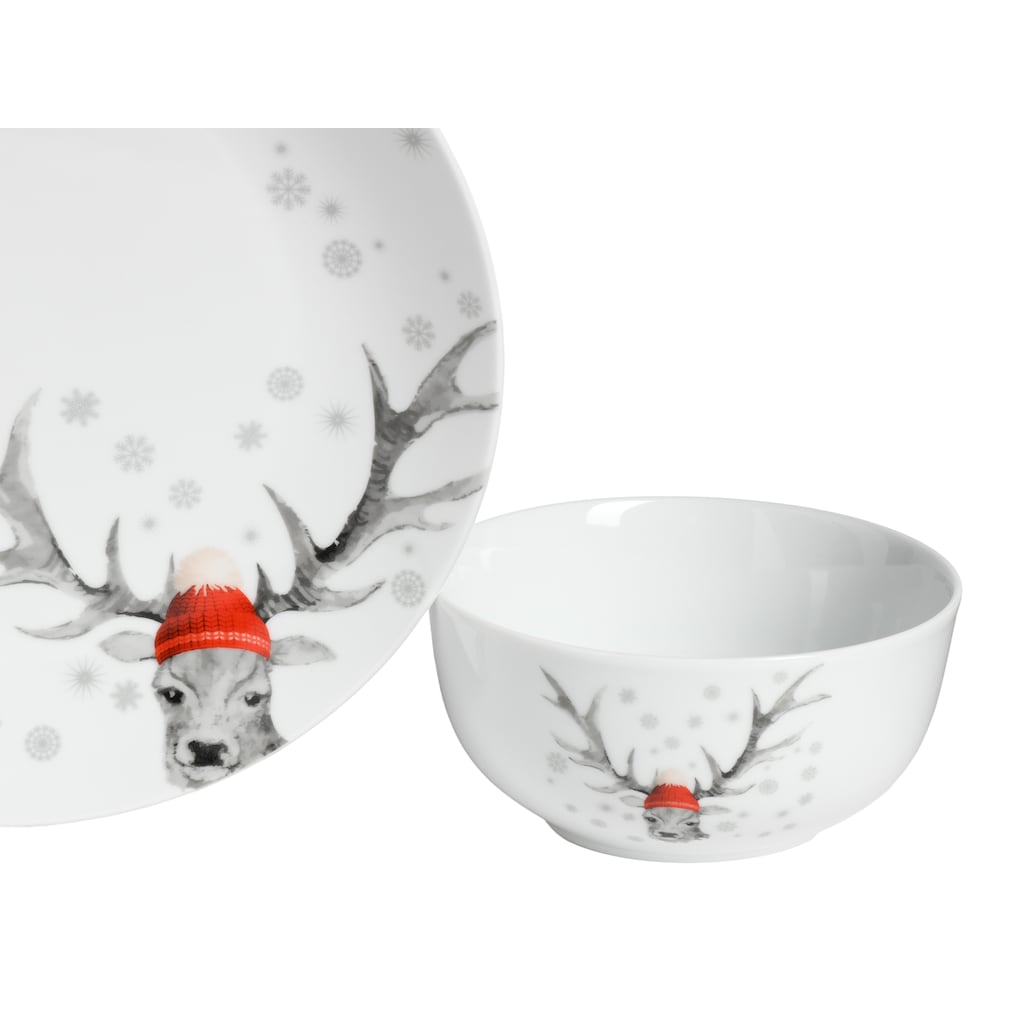 Сервиз Luna Hirsch с зимним мотивом оленя Creatable, белый