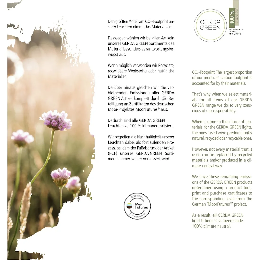 Подвесной светильник GREEN SOFIE сочетает в себе вечный дизайн и экологически чистые свойства, создавая привлекательную атмосферу над вашим обеденным столом. Светильник представлен с красивым белым бумажным абажуром, который обеспечивает мягкий и рассеянный свет. Наполните ваши помещения приятной и теплой атмосферой, которая приглашает к отдыху и уюту. Светильник рассчитан на цоколь E27 и может использоваться с максимальной мощностью 10 Вт. Благодаря совместимости с LED-лампами он обеспечивает энергоэффективное освещение, экономя как электроэнергию, так и деньги. Лампа в комплект не входит. Все компоненты этого светильника были на 100% климатически нейтрализованы. Наслаждайтесь не только эстетикой, но и хорошим чувством, внося вклад в охрану окружающей среды. Сделайте заявление о стиле и устойчивости.
