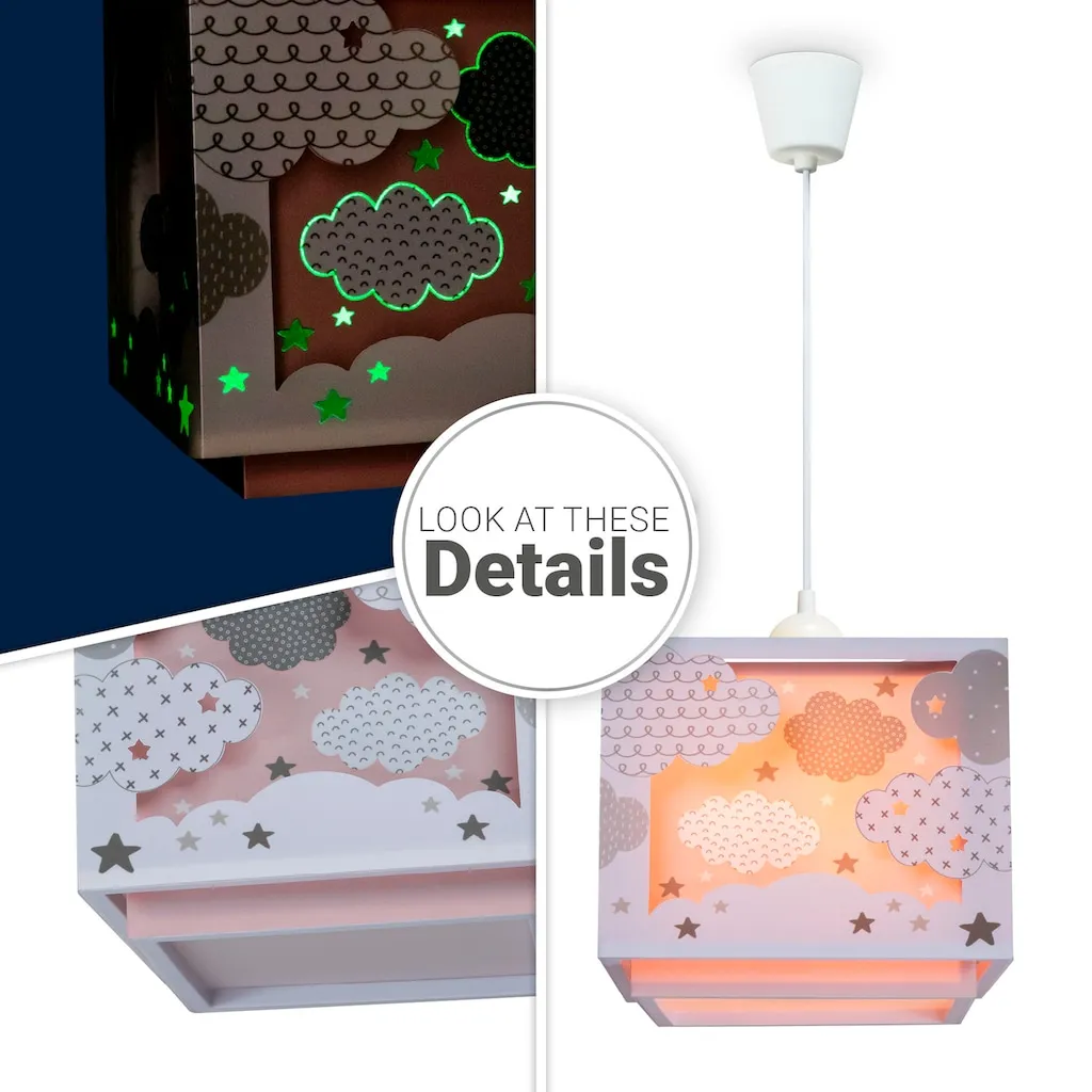 ОПТИКА - Игривый, удобный для детей светильник представлен в ненавязчивых цветах с волшебным мотивом облаков. СТИЛЬ - Современный, удобный для детей и невероятно милый - этот очаровательный светильник мгновенно станет изюминкой детской комнаты. МАТЕРИАЛ - Светильник изготовлен из качественного пластика, благодаря чему он особенно легкий и прочный. ДЕТАЛИ - Одинарный светильник с патроном E27, вы можете использовать любую лампу E27 мощностью до 15 Вт.