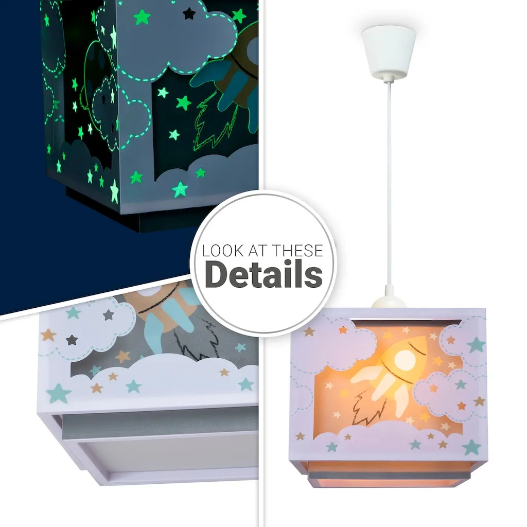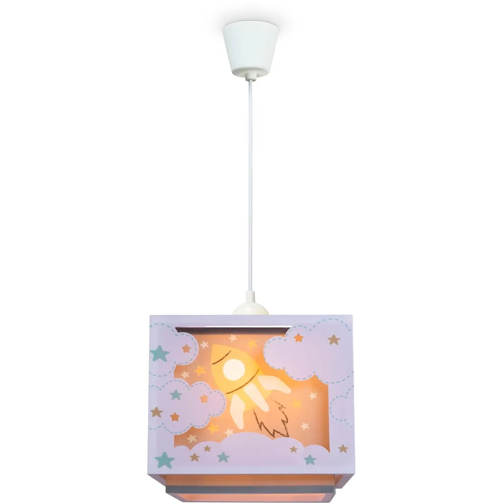 ОПТИКА - Этот модный подвесной светильник выполнен в ненавязчивых, светлых тонах и впечатляет игривым дизайном. СТИЛЬ - С детской космической тематикой светильник мгновенно станет звездой в любой детской комнате. МАТЕРИАЛ - Благодаря высококачественному пластику светильник особенно легкий и очень прочный. ДЕТАЛИ - Одноламповый, с патроном E27, позволяет использовать любую лампу E27 мощностью до 15 Вт.