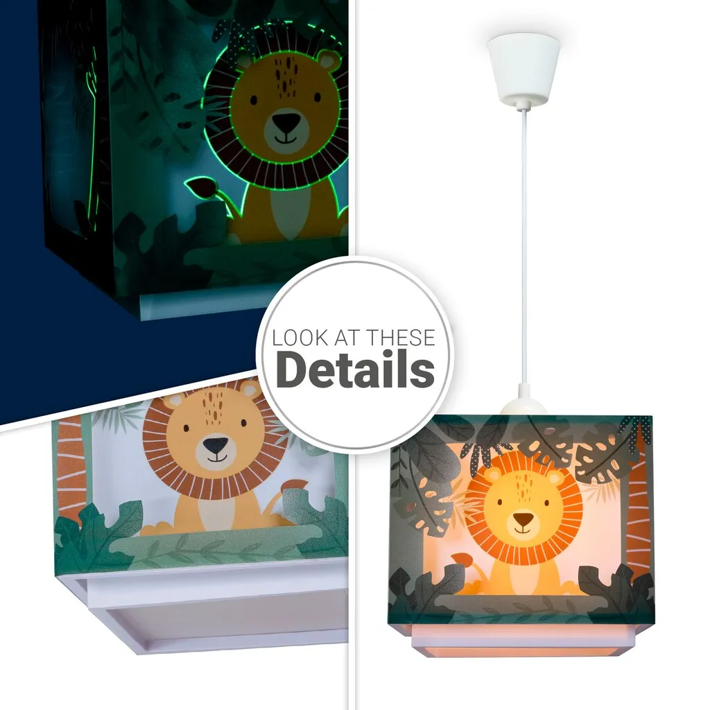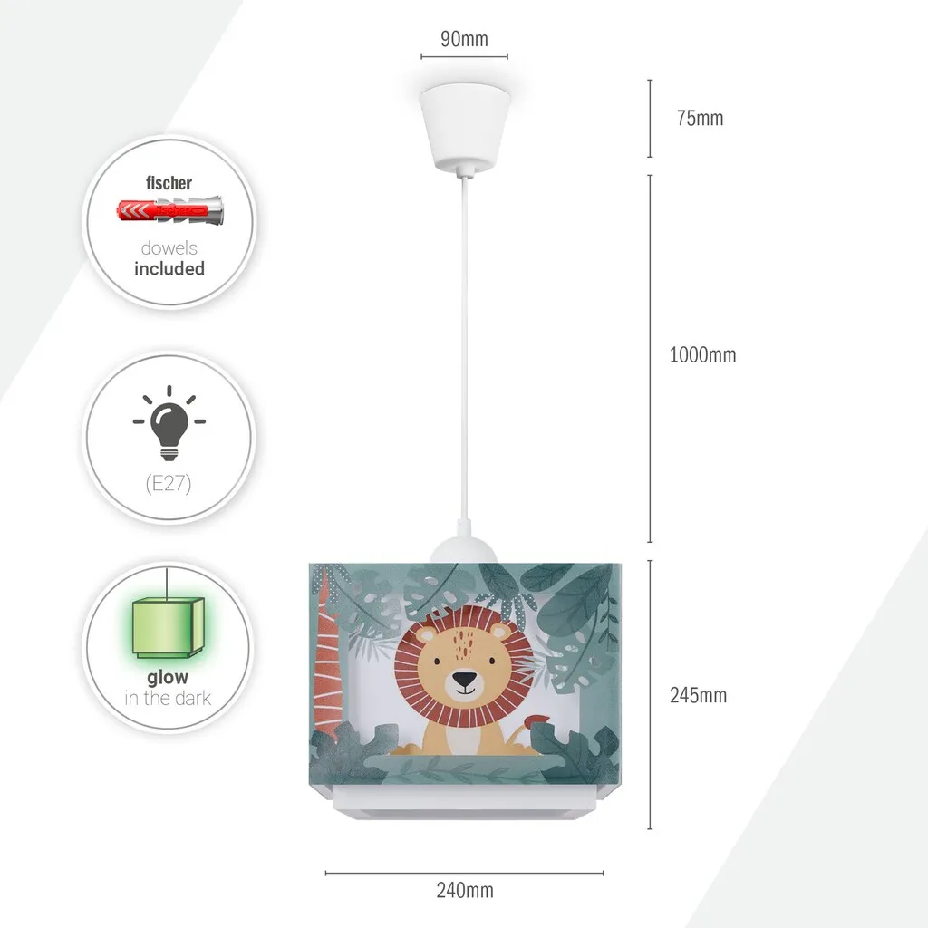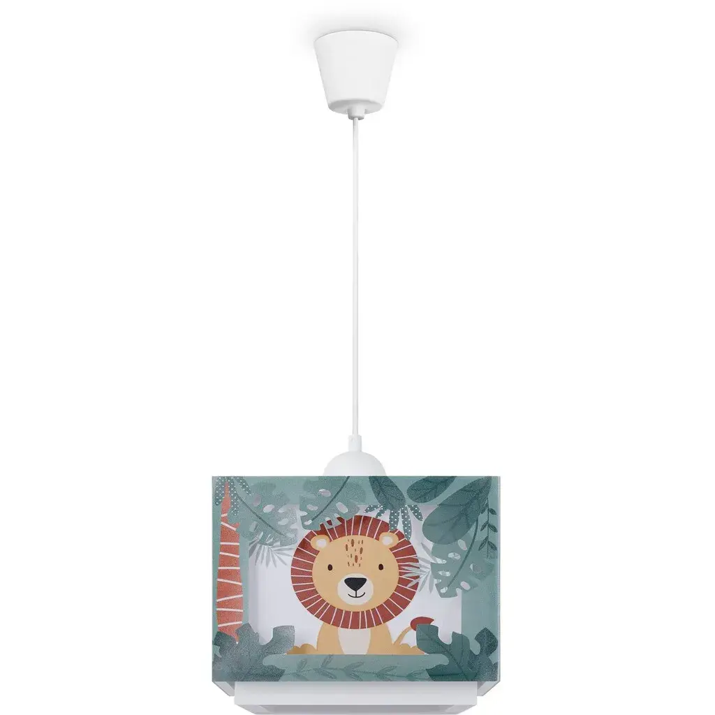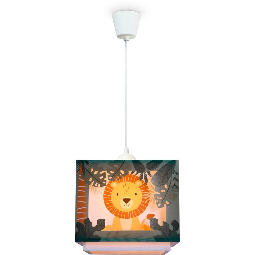 ОПТИКА - Этот модный подвесной светильник представлен в ярких цветах и современном дизайне с милым джунглевым мотивом. СТИЛЬ - Дикий, красочный и подходящий для детей, светильник будет радовать в любом интерьере и идеально подходит к самым разным обстановкам. МАТЕРИАЛ - Светильник изготовлен из качественного пластика, что делает его особенно прочным и надежным. ДЕТАЛИ - Одинарный светильник с патроном E27, вы можете использовать любую лампу E27 мощностью до 15 Вт.