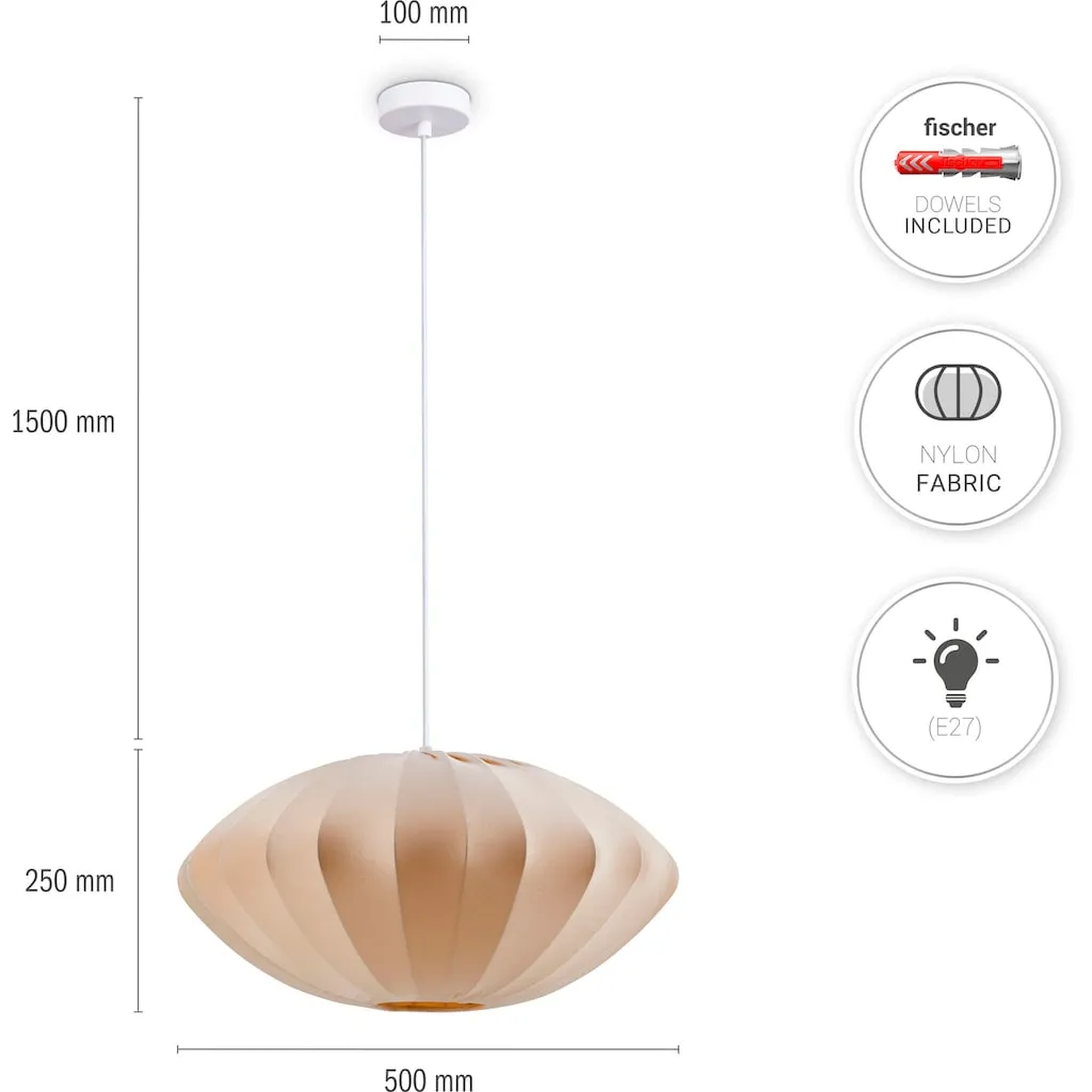 ОПТИКА - Эта стильная подвесная лампа с современной изогнутой формой представлена в сдержанных оттенках белого, бежевого или серого, СТИЛЬ - Современная, элегантная и необычная, лампа имеет лаконичный внешний вид, который идеально вписывается в существующий интерьер, МАТЕРИАЛ - Прочная алюминиевая конструкция и высококачественный нейлон делают эту лампу настоящим качественным изделием, ДЕТАЛИ - С một плафоном и цоколем E27, вы можете использовать любую лампу E27 мощностью до 25 Вт.