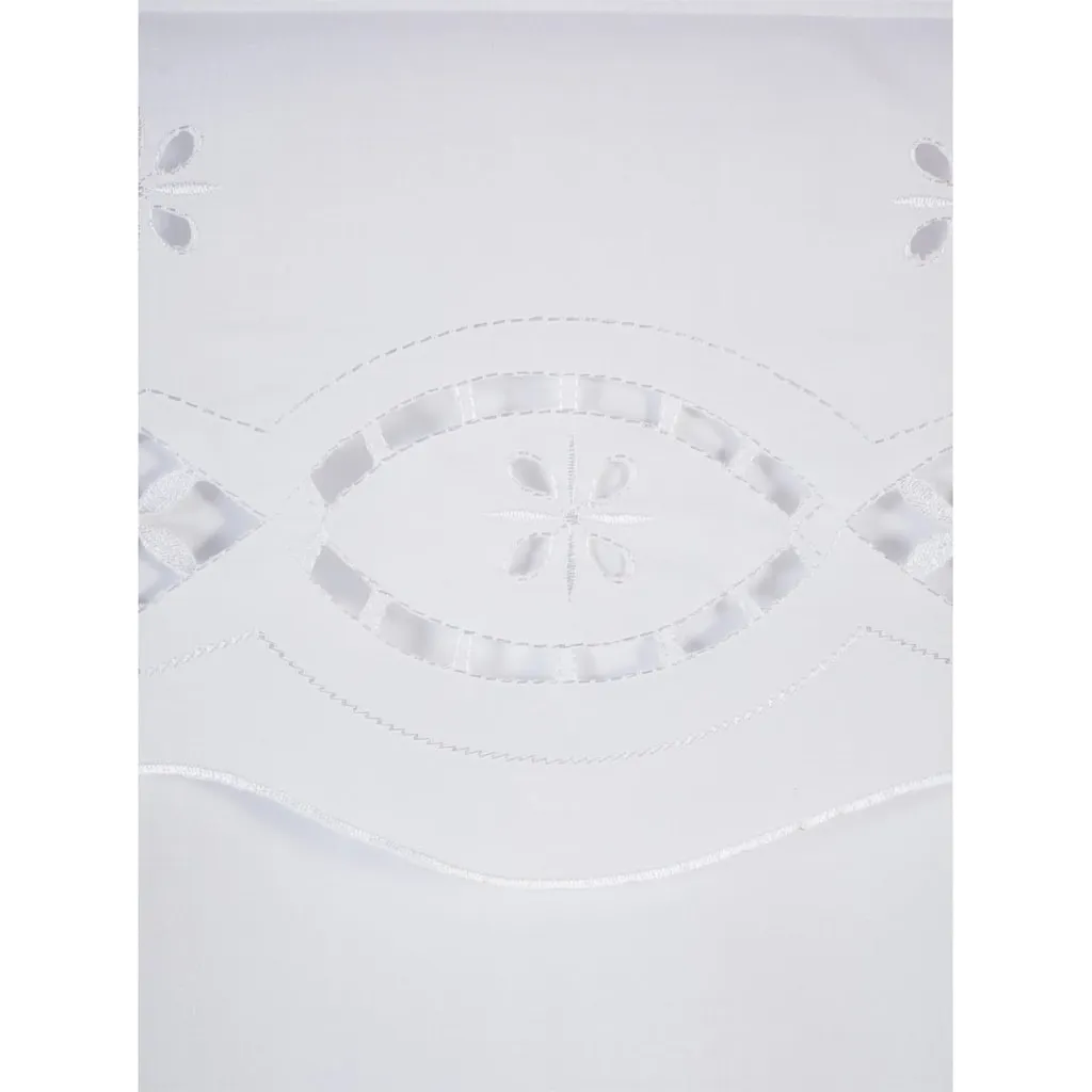 Полупрозрачная рулонная штора с декоративной вышивкой насквозь на планке и изогнутом завершении. С туннельным отверстием для карниза. 100% полиэстер. Можно стирать.