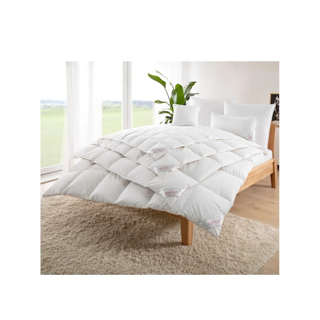 Комфортный сон, сделано в Германии: программа кроватей от Sannwald. Проверенное качество от Института Хохенштайн (кровати-каркас размером 135x200 см и наполнением 90% пух и 10% перо). Доступно в комфортном и люксовом качестве для ваших индивидуальных потребностей во сне: комфортное качество особенно прочное и долговечное. Люксовое качество впечатляет особенно высоким содержанием пуха, поэтому оно невероятно легкое и приятно согревающее. Чехол: 100% хлопок. Наполнитель: белый новый пух и перо. Класс 1. Наполнение подушки: 85% перо, 15% пух. Чехол, обработанный medicott, обеспечивает долгосрочную и естественную защиту от клещей и плесени. В комплекте мешок для хранения кровати. Машинная стирка до 60 °C. У нас особенно выгодно!