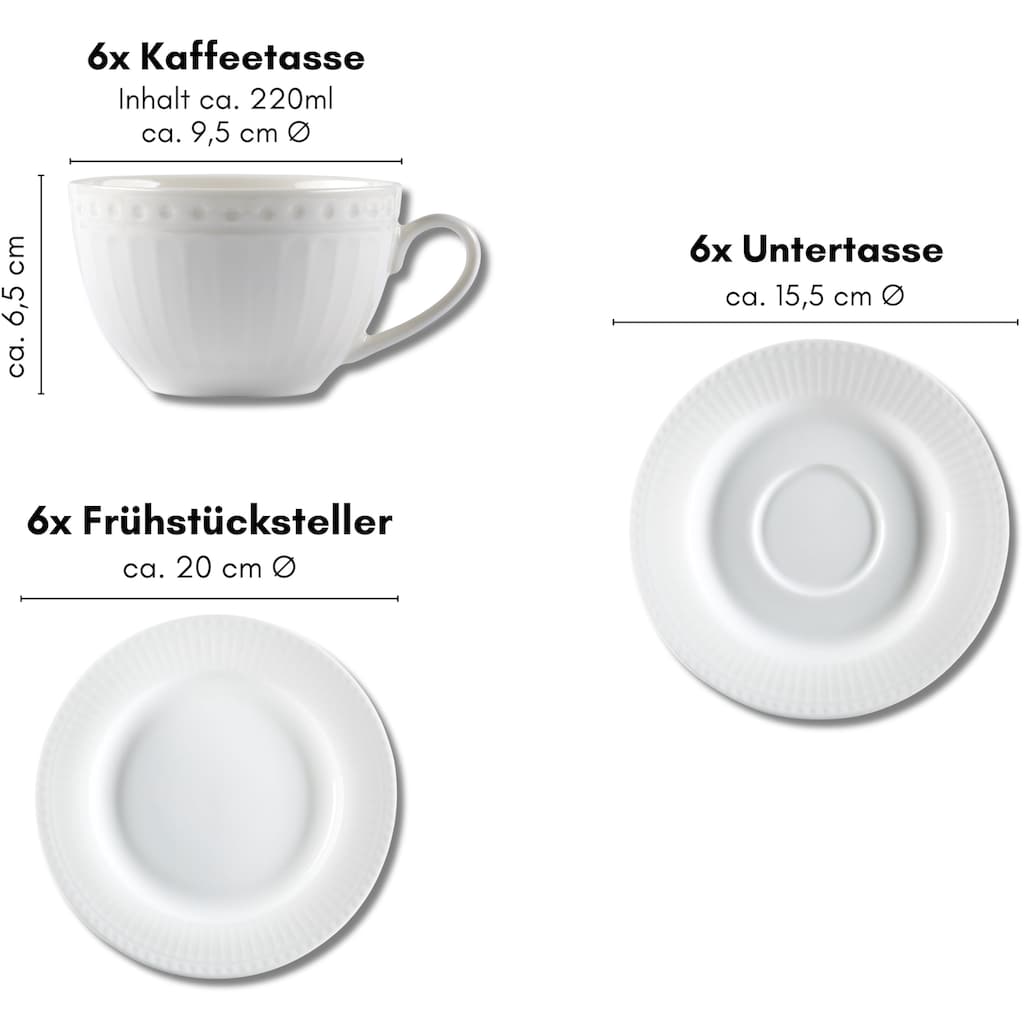 Кофейный сервиз от Ritzenhoff & Breker на 6 персон, из высококачественного фарфора, подходит для посудомоечной машины, подходит для микроволновой печи, 18 предметов