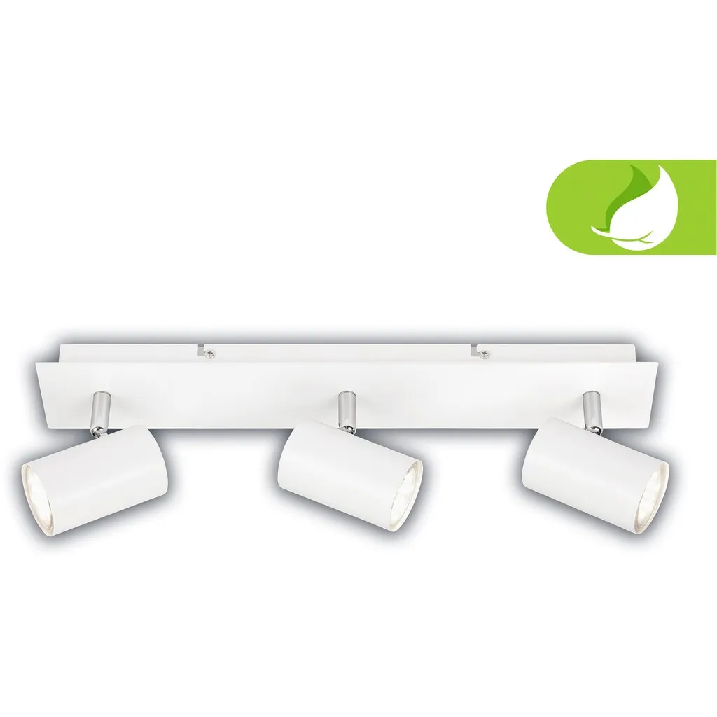 Наивысший класс энергоэффективности A: Потолочный спот с тремя плафонами оснащен тремя LED-лампами GU10 мощностью 2 Вт каждая, обеспечивающими 450 люмен при теплой цветовой температуре 3000K, что гарантирует отличную энергоэффективность. Долгий срок службы: Светодиоды потолочного светильника обеспечивают исключительно долгий срок службы до 50 000 часов, что приводит к реже необходимой замене и снижает расходы на обслуживание. Стильный белый металлический дизайн: Элегантная отделка металла придает споту яркий вид, который легко вписывается в любой интерьер. Гибкий дизайн освещения: Поворотные и наклоняемые головки лампы для детской комнаты позволяют создавать гибкое и направленное освещение, идеально подходящее для выделения определенных зон или объектов. Увеличенные размеры для более широкого применения: С длиной 450 мм, шириной 80 мм и высотой 123 мм этот светильник идеально подходит для рабочих зон на кухне, обеденного стола в столовой или для акцентного освещения в коридоре.