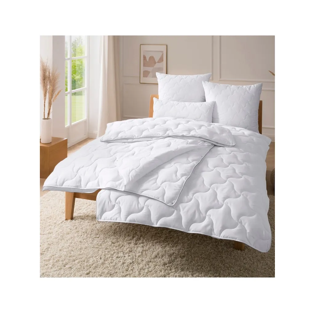 Программа постельных принадлежностей с влагообменом, особенно пышная, с чудесно мягкой начинкой из вискозы, произведенной из бамбука. Оптимальный температурный баланс: в зависимости от климата окружающей среды приятно согревает зимой и охлаждает летом. Подходит для людей с аллергией на пыль. Стежка волнами. Элегантная блестящая сатиновая наволочка: 100% хлопок. Наполнитель: 60% вискоза, 40% полиэстер. Машинная стирка при температуре до 60 °C.