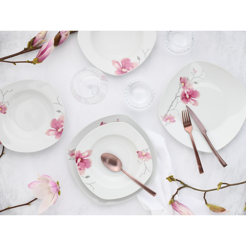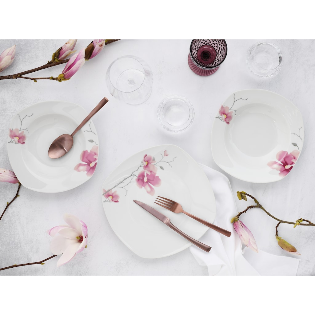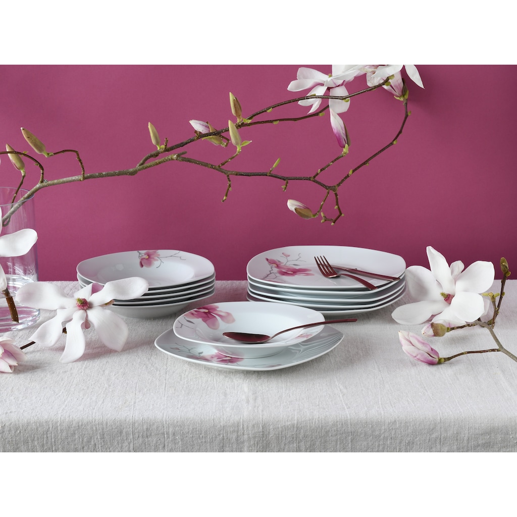 ЭЛЕГАНТНЫЙ НАБОР ТАРЕЛОК: 12 необычных предметов, готовых украсить ваш стол. В набор входят 6 обеденных тарелок (Ø 26 см) и 6 суповых тарелок (Ø 21 см). ДИЗАЙН-КЛАССИКА: Ориентированная на дизайн квадратная бестселлерная форма с конусными чашками создает современный вид и становится центром любого стола. Классический дизайн представлен с элегантными цветами розово-пурпурных оттенков. УНИВЕРСАЛЬНОСТЬ: Легко сочетать с другой посудой, современно и свежо выглядит, а также при необходимости можно расширить. Просто классически красиво! УДОВОЛЬСТВИЕ: Посуда будет сопровождать вас весь день. Она удивительно долговечна и, разумеется, подходит для посудомоечной машины и микроволновой печи. КАЧЕСТВО БРЕНДА: Наша посуда разрабатывается в Германии и производится на избранных премиальных фабриках, чтобы предоставить вам качество, которого вы ждете для вашего дома. Кроме того, в случае поломки замена обычно доступна оперативно и на протяжении многих лет. позаботились!