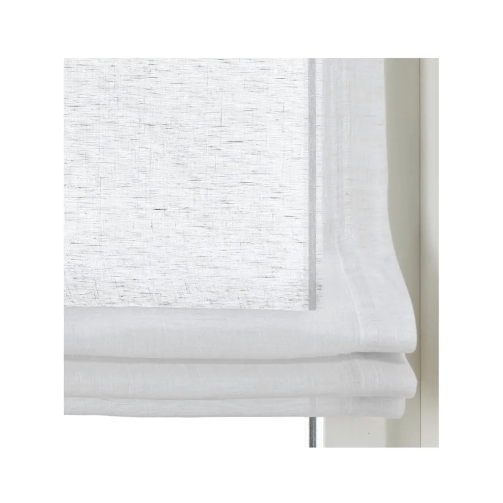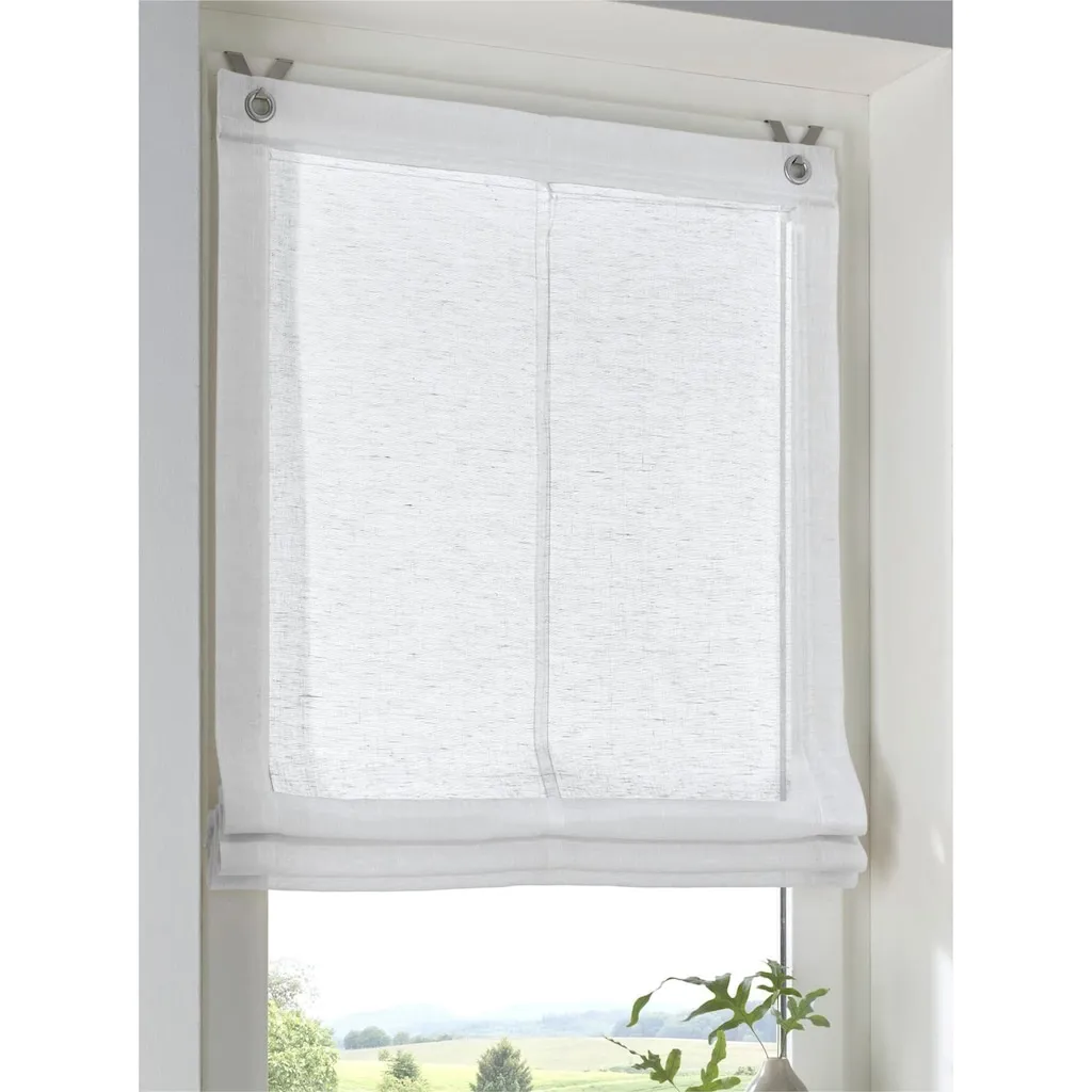 Полупрозрачная рулонная штора из ткани с декоративной структурой под лен. Утяжелительная планка сверху и снизу. Простая установка без сверления и винтов. Советы по правильным размерам доступны онлайн. Доставка включает крюки. 100% полиэстер. Можно стирать.