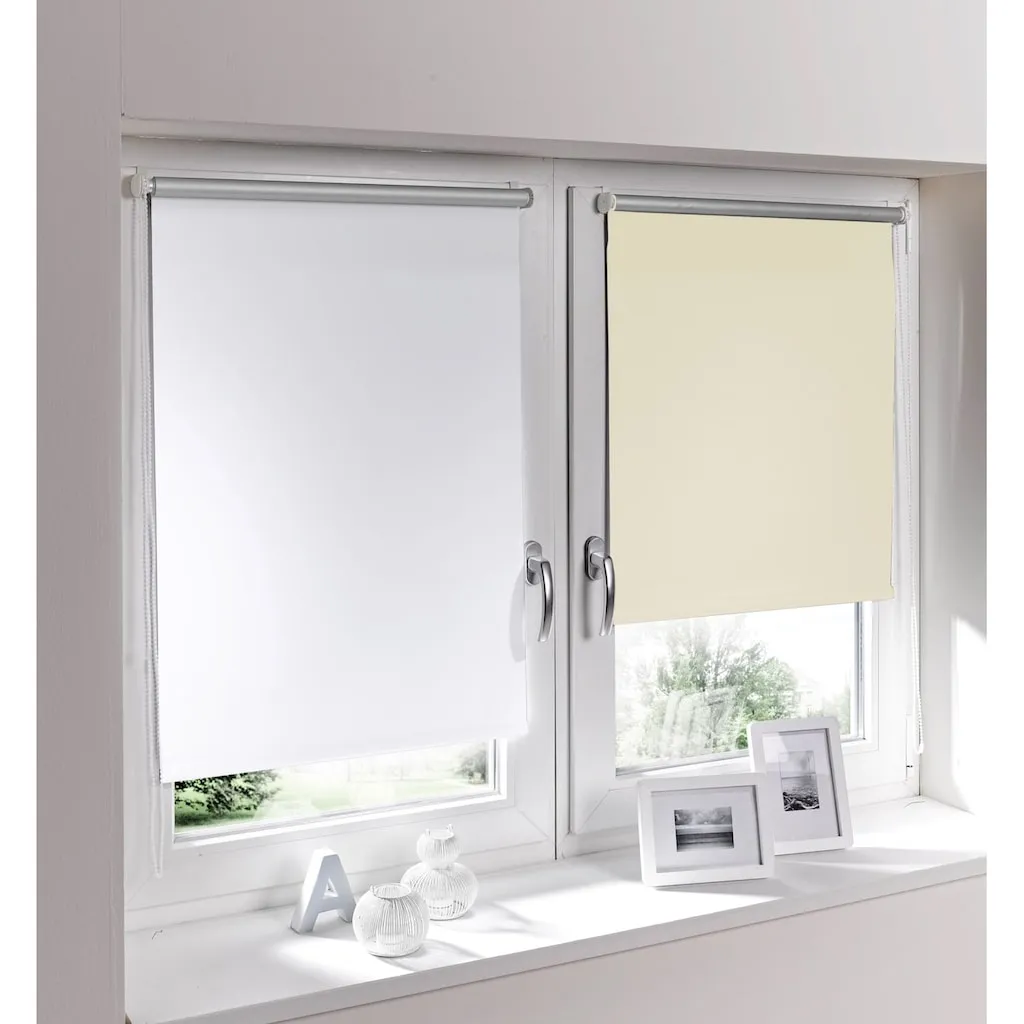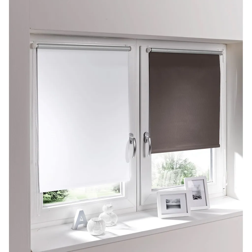 Рулонная штора затемняющая. Задняя сторона термопокрыта для идеального затемнения. С цепочным приводом. Система крепления на зажим: простая установка на оконную раму без инструментов. Советы по правильному измерению доступны в интернете. 100% полиэстер.