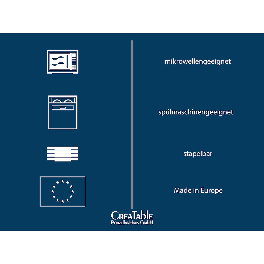 Серия фарфора »Flora Orchard«, CreaTable. С декоративным оформлением фруктов в стиле загородного дома на форме из фарфора в ностальгическом мануфактурном стиле. Прекрасный фруктовый декор в сочетании с клетчатым краем идеально обнимает круглую форму. Игривая посуда, которая будет доставлять вам радость долгое время. Подходит для мытья в посудомоечной машине и использования в микроволновой печи. Серия фарфора »Flora Orchard« от CREATABLE доступна в следующих комплектах: кофейный сервиз 18 предметов: по 6 чашек по 200 мл, 14,5 см блюдец, десертных тарелок 21 см. Столовый сервиз 12 предметов: по 6 обеденных тарелок 27 см и суповых тарелок 22 см. Комбинированный сервиз 30 предметов: по 6 чашек по 200 мл, 14,5 см блюдец, десертных тарелок 21 см, обеденных тарелок 27 см и суповых тарелок 22 см. 6 кофейных кружек. 6 мисок для мюсли. Набор для молока/сахара, 2 предмета (молочник и сахарница). Сервировочный набор, 3 предмета (2 миски, 1 поднос).