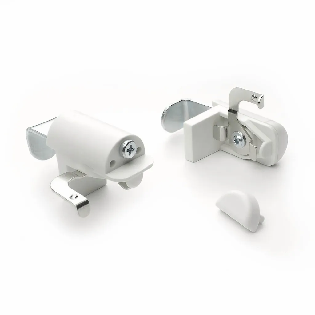 Крепежные держатели позволяют установить алюминиевые жалюзи без сверления. Просто зажмите их на оконную раму, защелкните алюминиевый направляющий профиль жалюзи в держатель и зафиксируйте фиксирующим рычагом. Материал: 100% пластик/магнит.