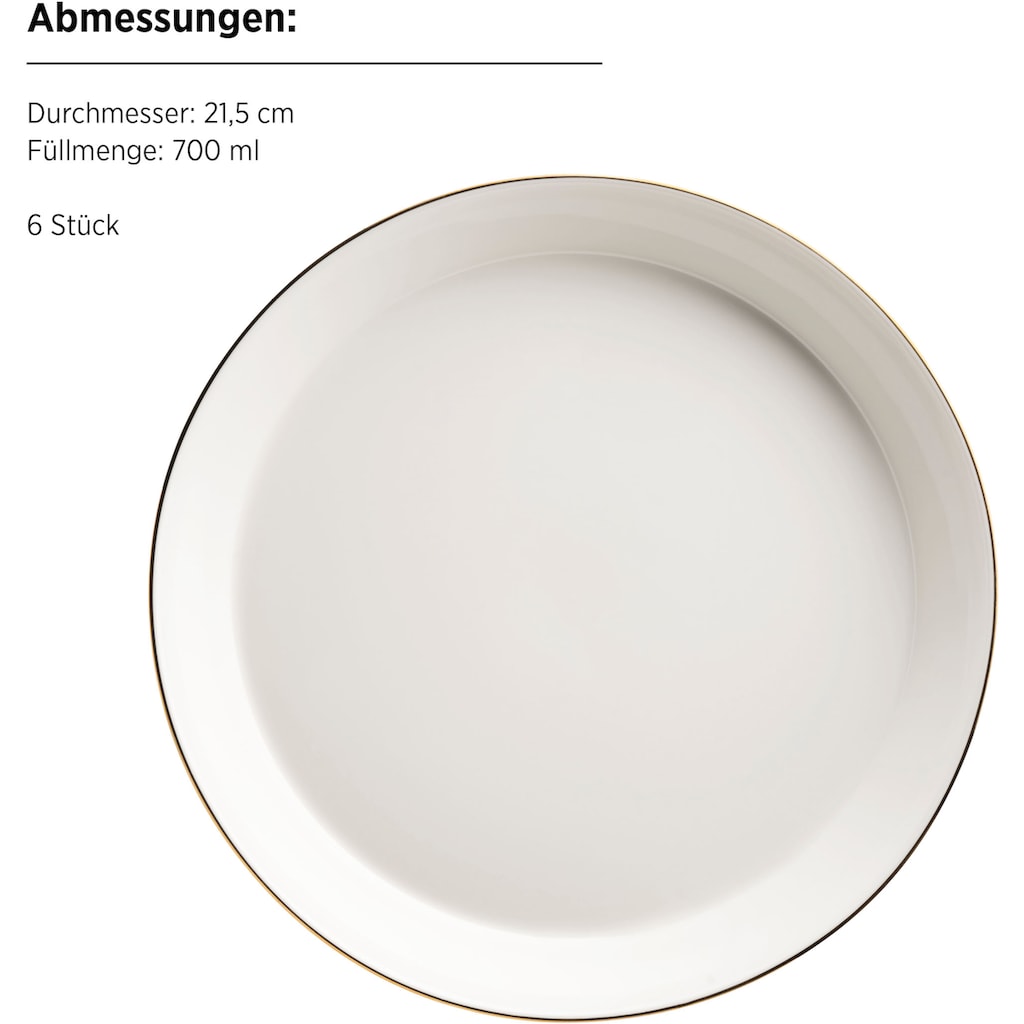 Набор из 12 тарелок включает 6 обеденных тарелок диаметром 26 см и 6 суповых тарелок диаметром 21,5 см. Набор тарелок сочетает в себе современный фарфоровый вид с округлыми скандинавскими формами и привносит современную элегантность на ваш стол. Изготовленный из легкого и прочного фарфора, этот сервиз идеально подходит для повседневного использования и легко выдерживает нагрузки повседневной жизни. Комбинируясь с другими предметами серии Sita, набор можно расширять индивидуально и он подходит для различных декораций стола. Тарелки подходят для мытья в посудомоечной машине и использования в микроволновой печи, что делает их особенно простыми в уходе.