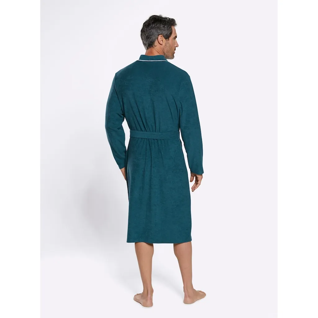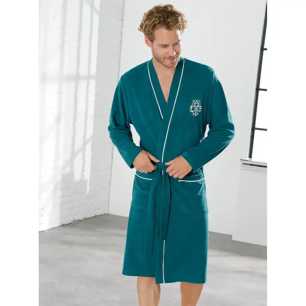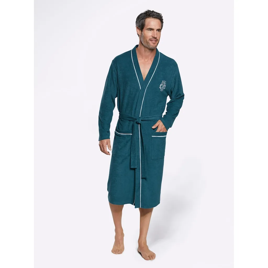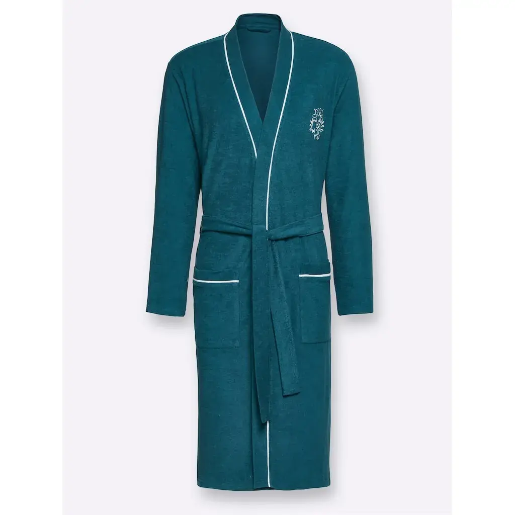 Этот халат в модном кимоно-кустуме с контрастной отделкой выглядит благородно. С двумя накладными карманами и вышивкой. Пояс с петлями для пояса. Мягкий легкий фротте. Поддерживает инициативу Cotton made in Africa. 80% хлопок, 20% полиэстер.
