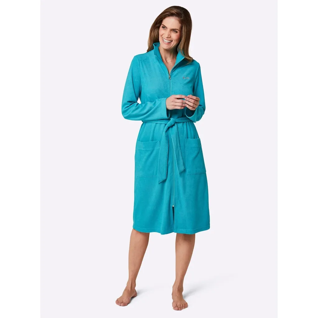 Этот халат из легкой махровой ткани от feel good привлекает внимание своим небольшим стоячим воротником, практичной застежкой-молнией и поясом на талии. Маленькая вышивка логотипа на груди. 2 кармана. Поддерживает инициативу Cotton made in Africa. 80% хлопка, 20% полиэстера.