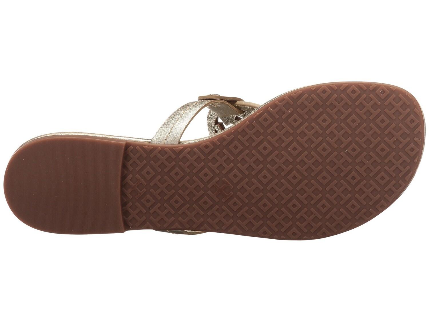 Сандалии Tory Burch Miller Flip Flop с верхом из гладкой кожи, фирменным логотипом-медальоном на союзке и украшениями с заклепками. Открытый носок с центральным ремешком. Подкладка из гладкой кожи. Мягкая кожаная стелька обеспечивает дополнительный комфорт. Текстурированная синтетическая подошва. Импортированный. Замеры изделия были сняты для размера 9 и ширины M. Обратите внимание, что размеры могут различаться в зависимости от размера. Размеры: Вес: 5 унций.