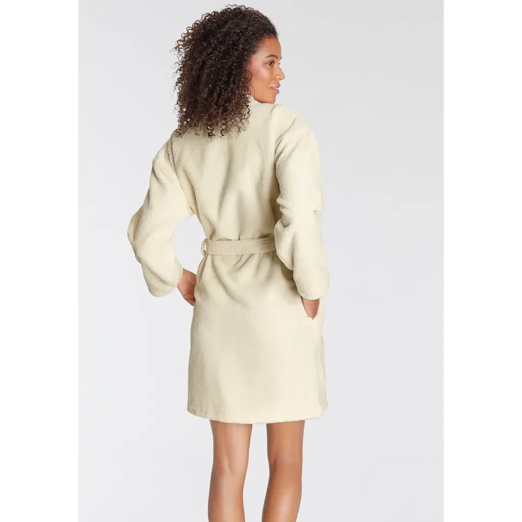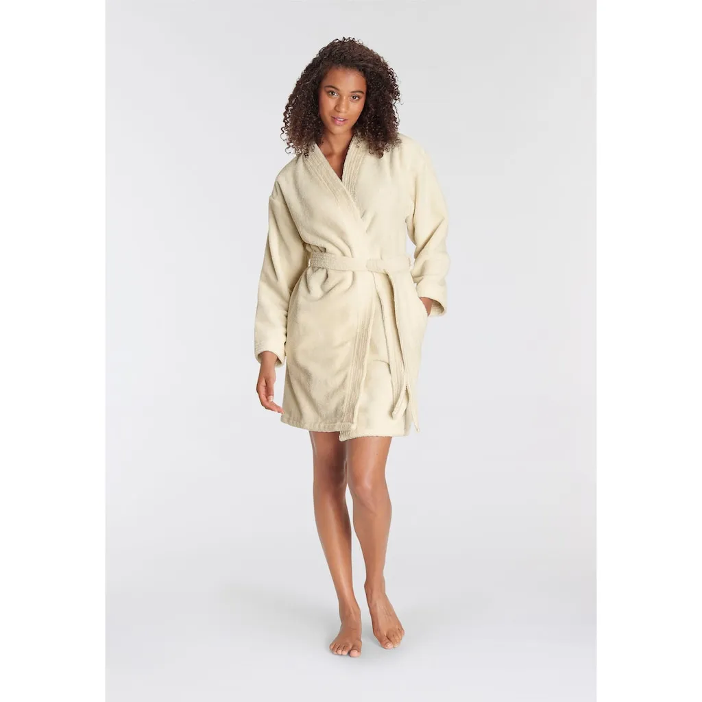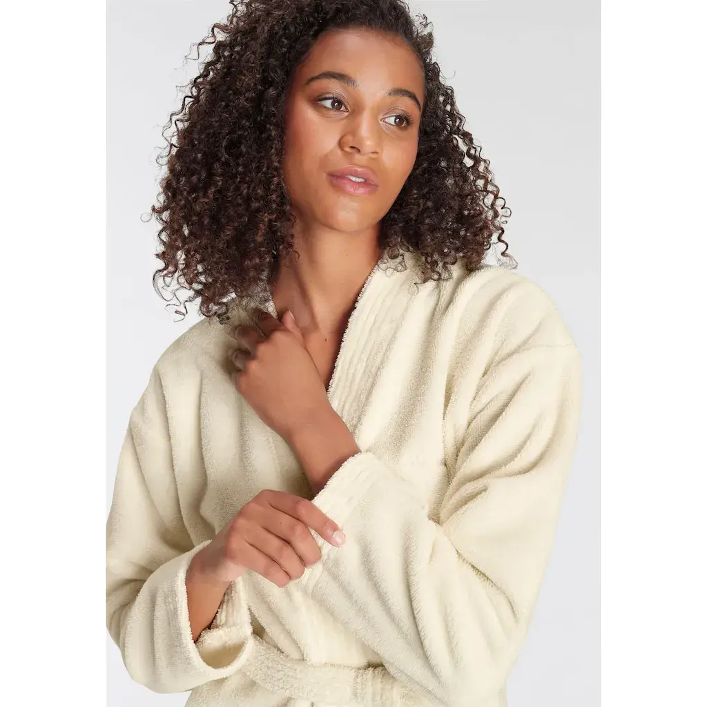 Халат кимоно короткой длины, с продольной прострочкой на манжетах рукавов, с свободным поясом на талии, мягкая махровая ткань из хлопковой смеси