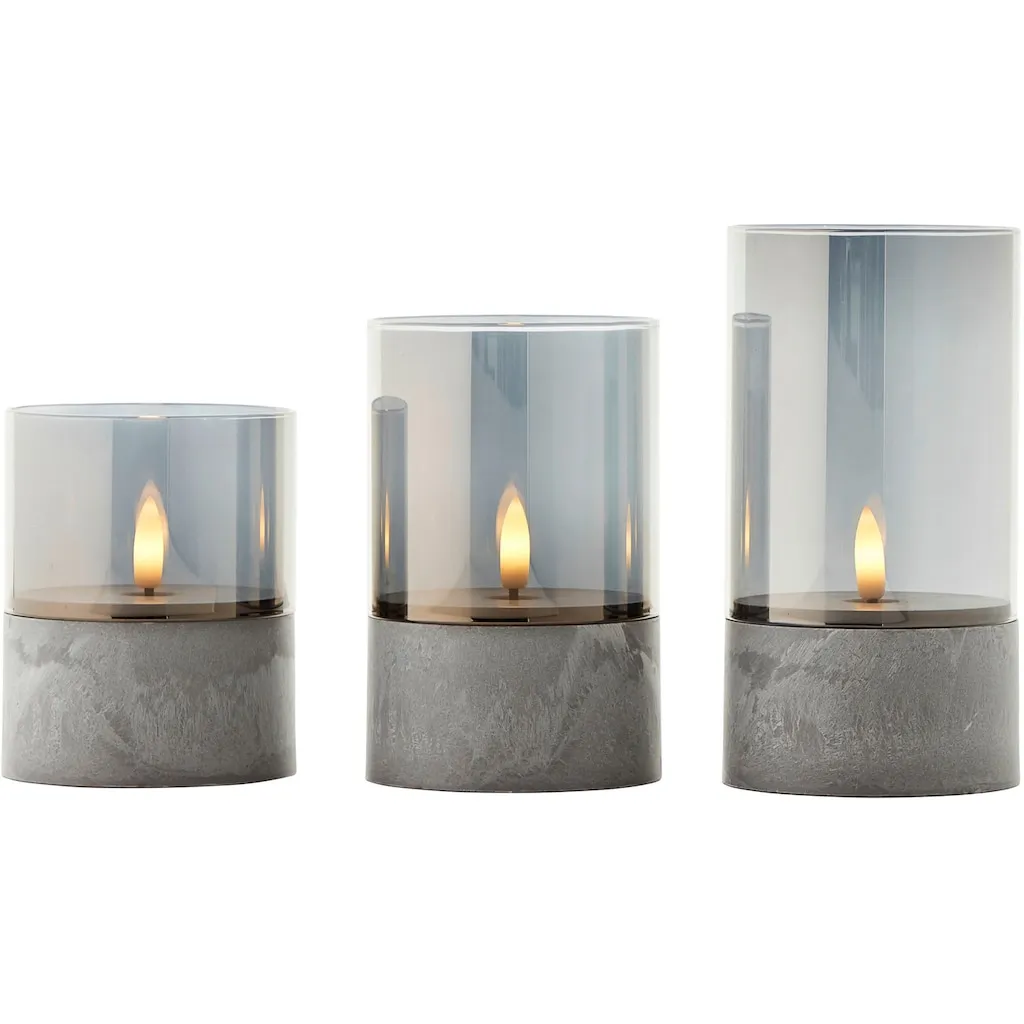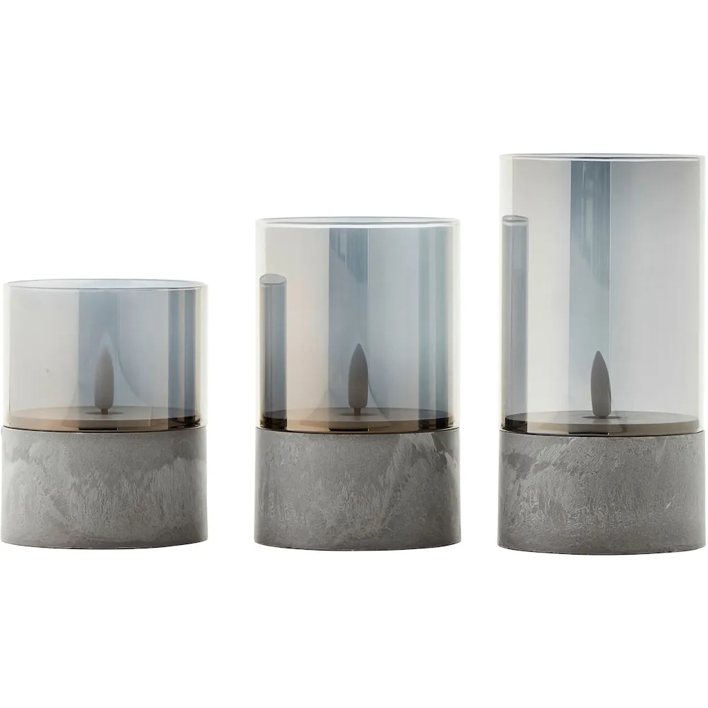 Блестящая уличная настольная лампа Bougie с LED-модулем, 3 шт. сверхтеплые LED-свечи, набор из 3 шт., таймер, высота 10/12,5/15 см, диаметр 8 см Brilliant, Grau rauchglas