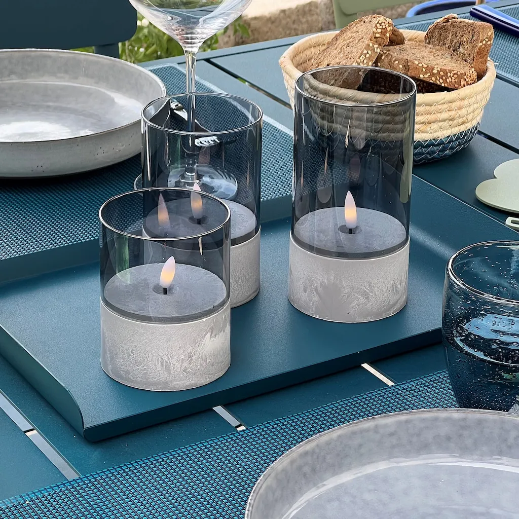 Блестящая уличная настольная лампа Bougie с LED-модулем, 3 шт. сверхтеплые LED-свечи, набор из 3 шт., таймер, высота 10/12,5/15 см, диаметр 8 см Brilliant, Grau rauchglas 4 187₽