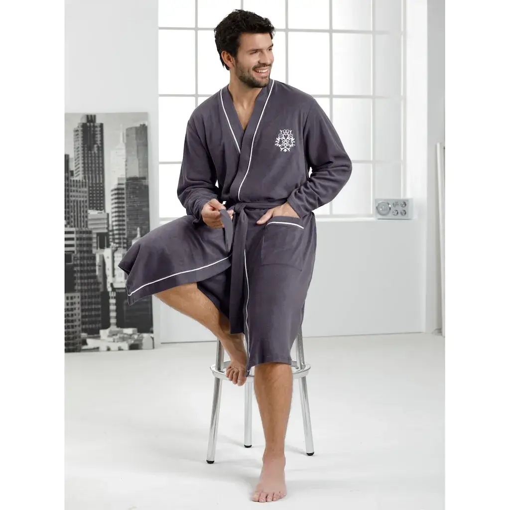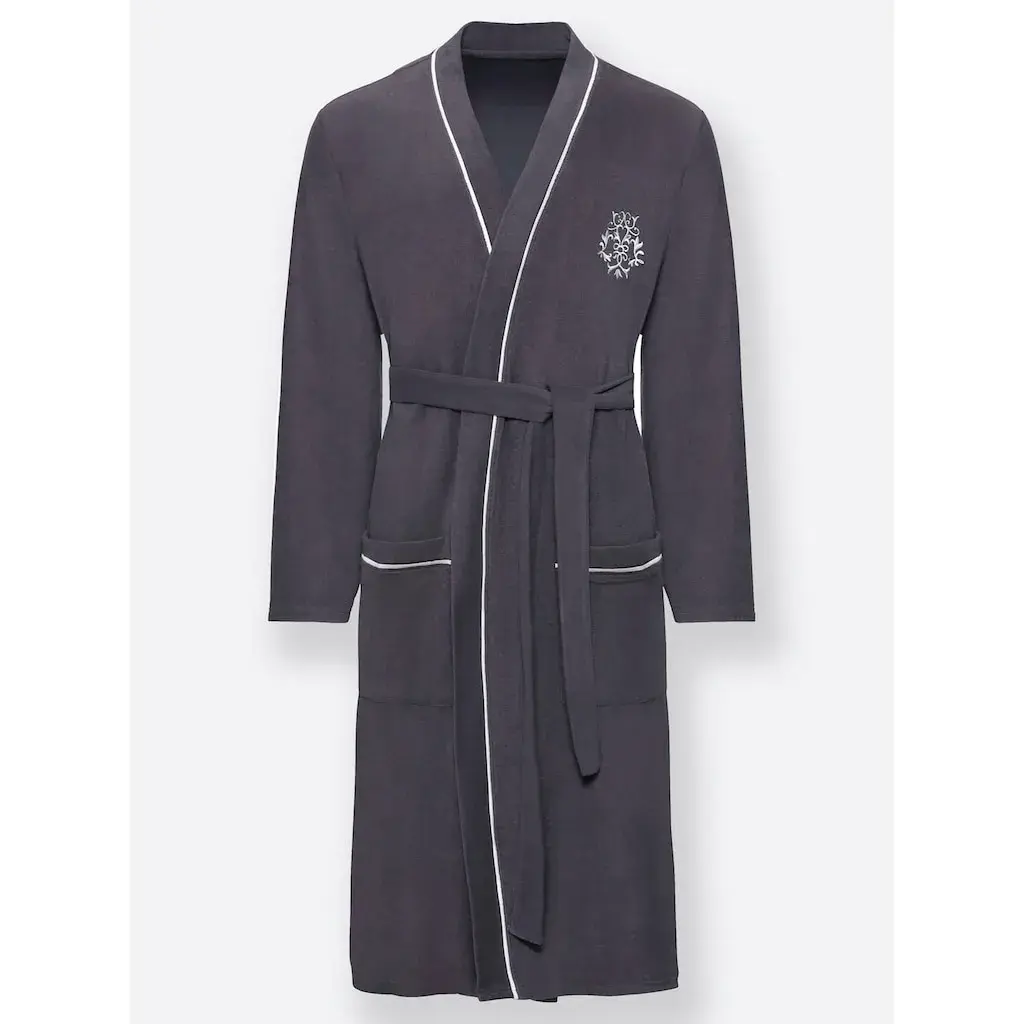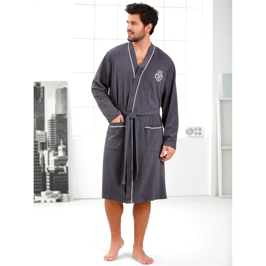 Этот халат в модном кимоно-кустуме с контрастной отделкой выглядит благородно. С двумя накладными карманами и вышивкой. Пояс с петлями для пояса. Мягкий легкий фротте. Поддерживает инициативу Cotton made in Africa. 80% хлопок, 20% полиэстер.