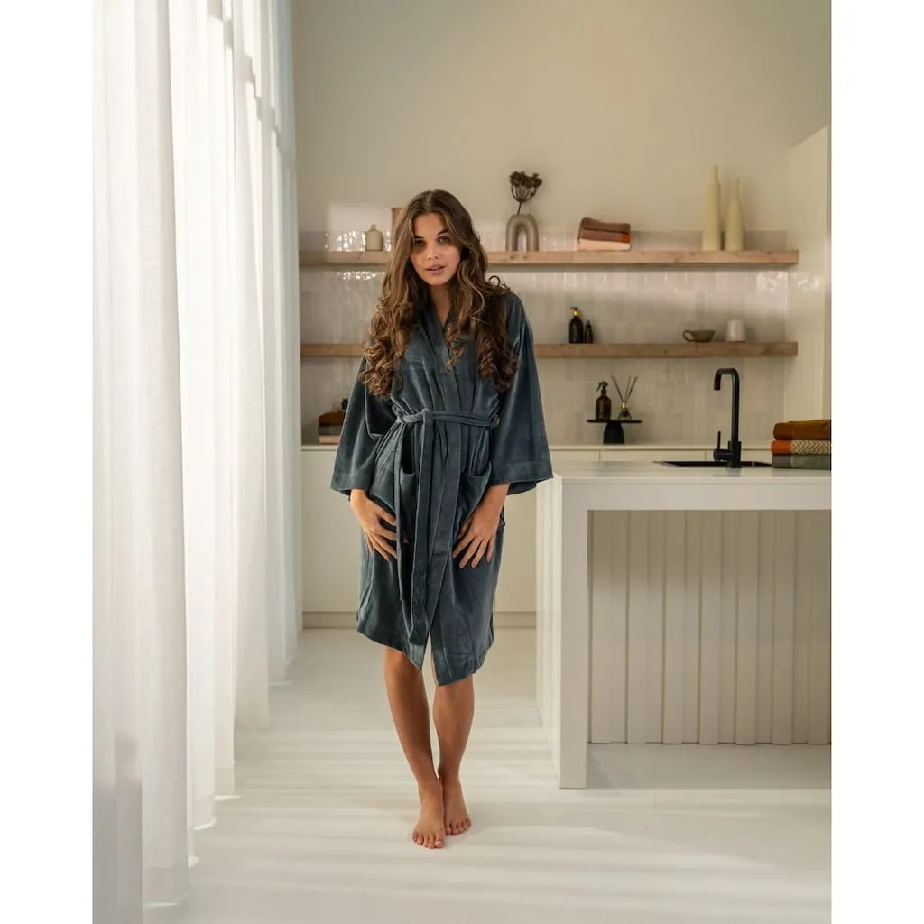 Унисекс-халат, изготовлен из органического хлопка и переработанного полиэстера, с бархатной текстурой, удлиненная модель, с двумя удобными боковыми карманами