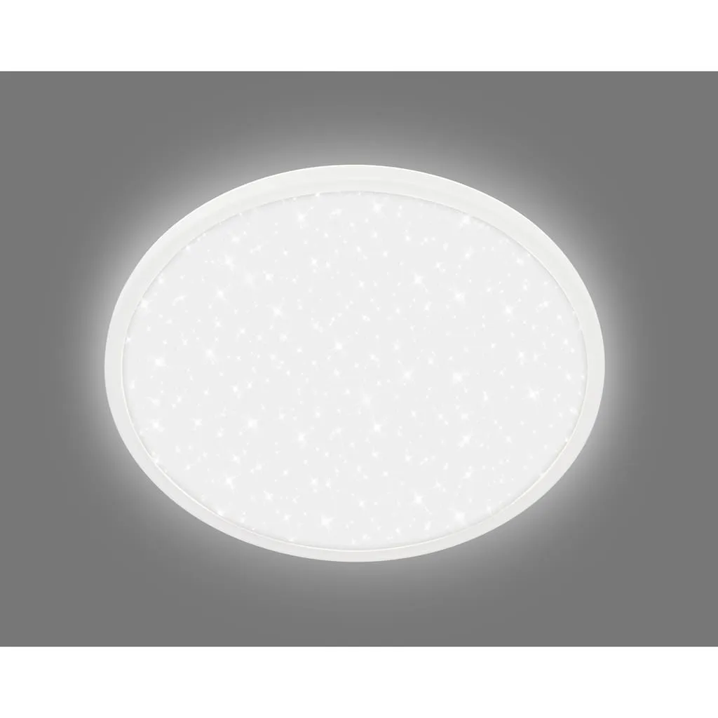Плоская LED-панель белого цвета со звездным эффектом для жилых помещений, спален и коридоров, 22 Вт LED (3000 лм, 4000 К) обеспечивает нейтральный свет и ясную, приятную атмосферу, встроенный эффект подсветки для непрямого освещения и стильного восприятия помещения, декоративная звездная крышка в качестве стильного акцента для современных интерьеров, компактные размеры (Ø375x45 мм), идеально для низких потолков и ненавязчивой интеграции