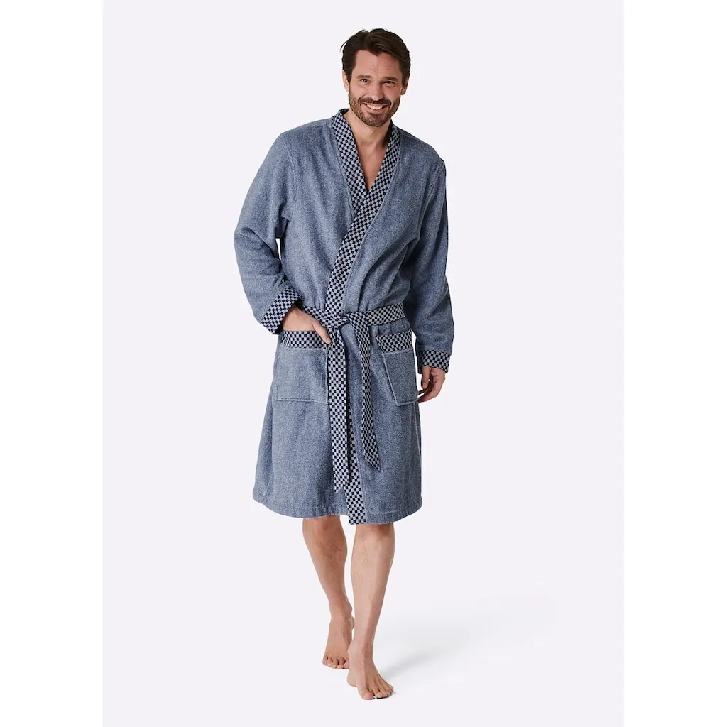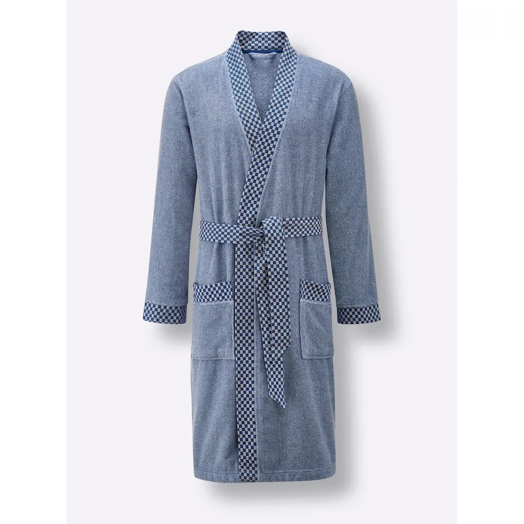 Уютный халат Feel Good, Jeansblau-ecru-meliert