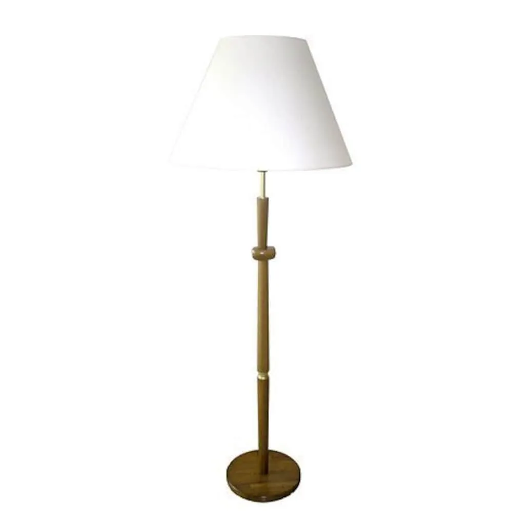 Торшер, Laue. Классический торшер для жилых помещений, выполнен из массива дерева с абажуром кремового цвета из текстиля. Удобный в эксплуатации выключатель включения-выключения посередине стойки. Диаметр абажура приблизительно 55 см, высота приблизительно 155 см. Подходит для ламп E27, максимум 60 Вт (в комплект не входит). Сделано в Германии! Торшер поставляется полностью собранным. Вам нужно только надеть текстильный абажур. Доступен в 3 различных оттенках дерева. Дерево цвета дуба - металлические детали цвета латуни Дерево цвета ореха - металлические детали цвета латуни Дерево цвета вишни - металлические детали цвета латуни