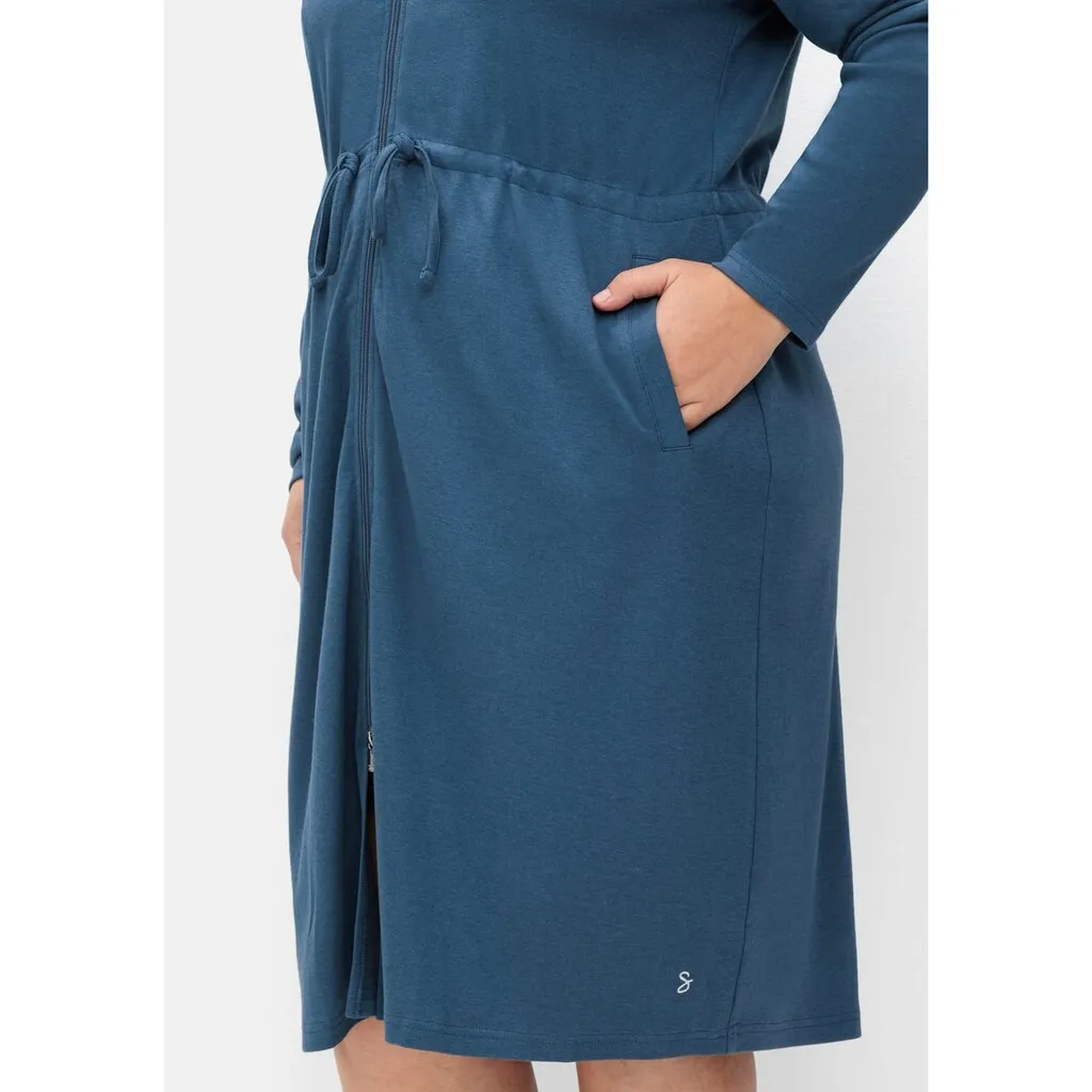 • Халат для купания или утренний халат • С передними карманами, молнией и капюшоном • Регулируемая талия с внутренним шнурком • Мягкий интерлок с анти-пиллинг обработкой • Поддерживает инициативу «Хлопок, произведенный в Африке» Халат с молнией и капюшоном. Этот утренний халат оснащен двумя практичными передними карманами. Талия регулируется с помощью внутреннего шнурка.Подробнее о посадке: благодаря свободной модели длиной до колен, халат особенно удобен в носке.Подробнее о материале: мягкая интерлок-ткани из смеси хлопка и модала устойчива к деформации и приятна на ощупь. Кроме того, материал обработан анти-пиллинг составом, предотвращающим образование катышков и ворса - так халат дольше сохраняет привлекательный вид. 50% хлопок, 50% модал. Машинная стирка.