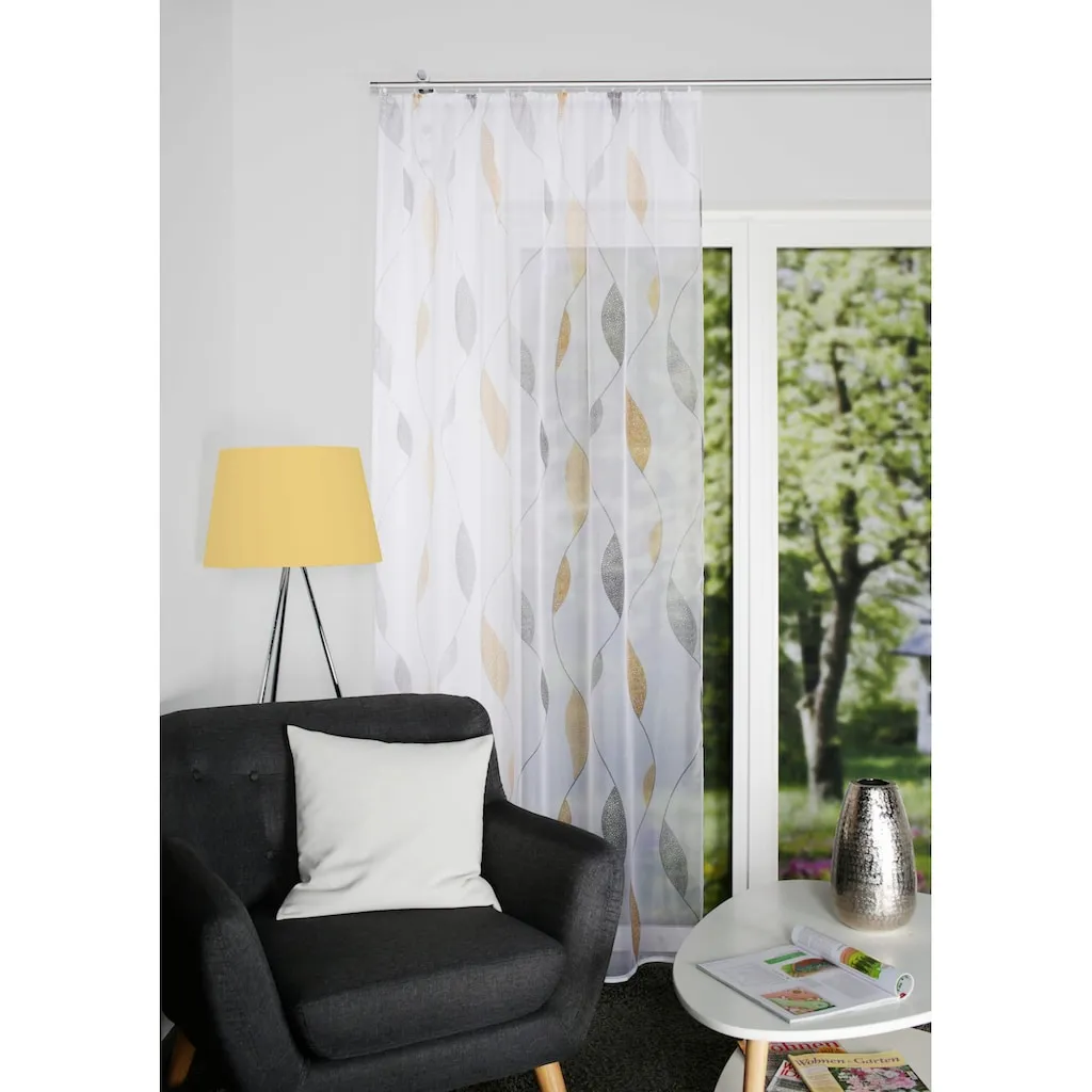 Декоративный магазин. Нежный, прозрачный вуаль с современным рисунком. Легко ухаживать, с встроенной сборочной лентой. 100% полиэстер. Машинная стирка.