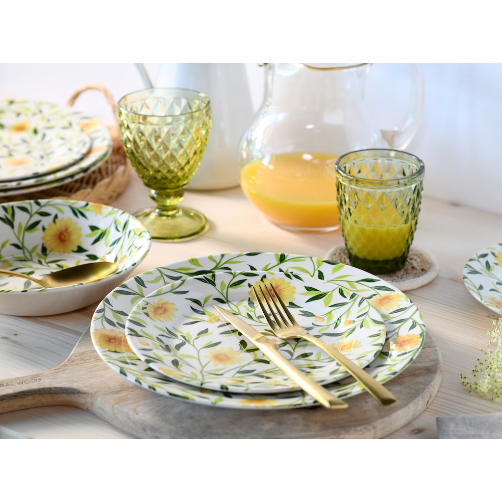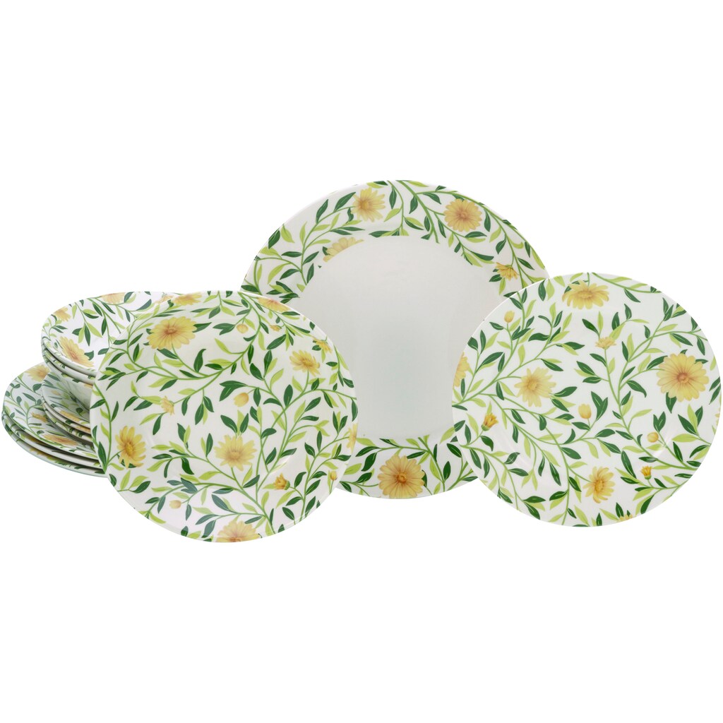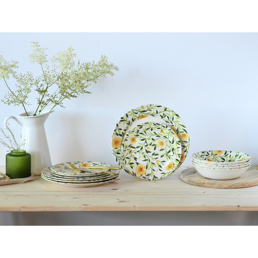 Набор тарелок Amarilla, 12 предметов с цветочным и листовым рисунком Creatable, желтый