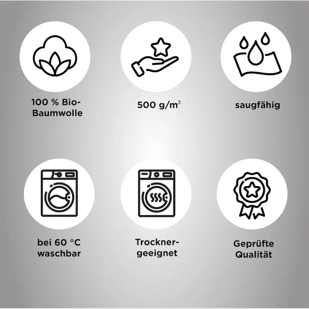 СЕРТИФИЦИРОВАНО GOTS - произведено из 100% хлопка (органического) с соблюдением высочайших экологических и социальных стандартов для большей долговечности, ВЫСОКОЕ КАЧЕСТВО И ЛЕГКОСТЬ УХОДА - простые рельефные полосы обеспечивают особенно легкий уход и сдержанную, но элегантную внешность, ШИРОКАЯ ПРОГРАММА - доступно во многих цветах и всех распространенных размерах: как для мытья рук, косметическое полотенце, полотенце для гостей, полотенце для рук и душа, ПОДХОДЯЩИЙ КОВРИК ДЛЯ ВАННОЙ - коврик для ванной из 100% хлопка (органического) с плотностью около 800 г/м² гармонично дополняет программу, КОМПЛЕКТАЦИЯ - набор из 6 полотенец для мытья рук размером 16 x 21 см