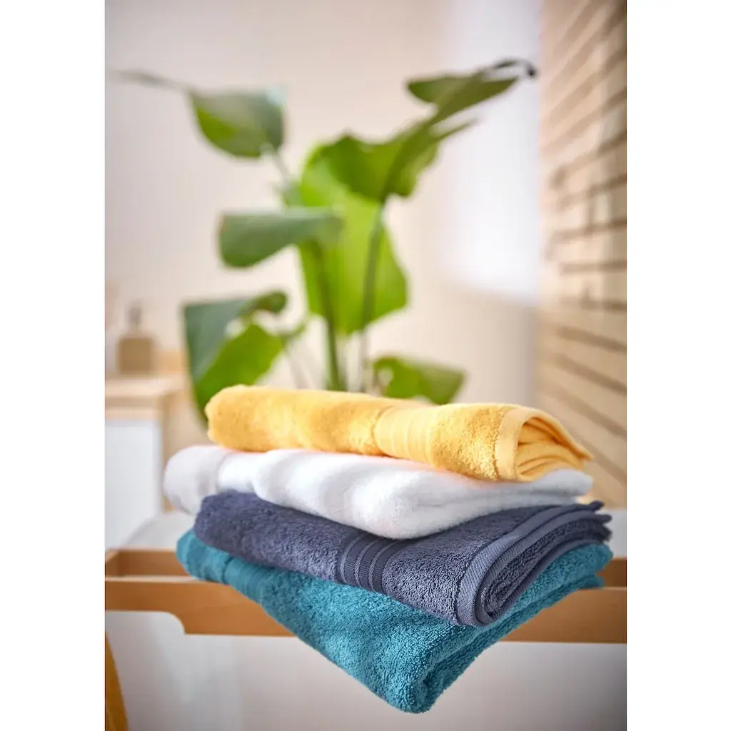 100% хлопок, 500 г/м², высокоабсорбирующий и быстро сохнущий, стирается при 60°C и подходит для сушки в сушильной машине, петля для подвешивания