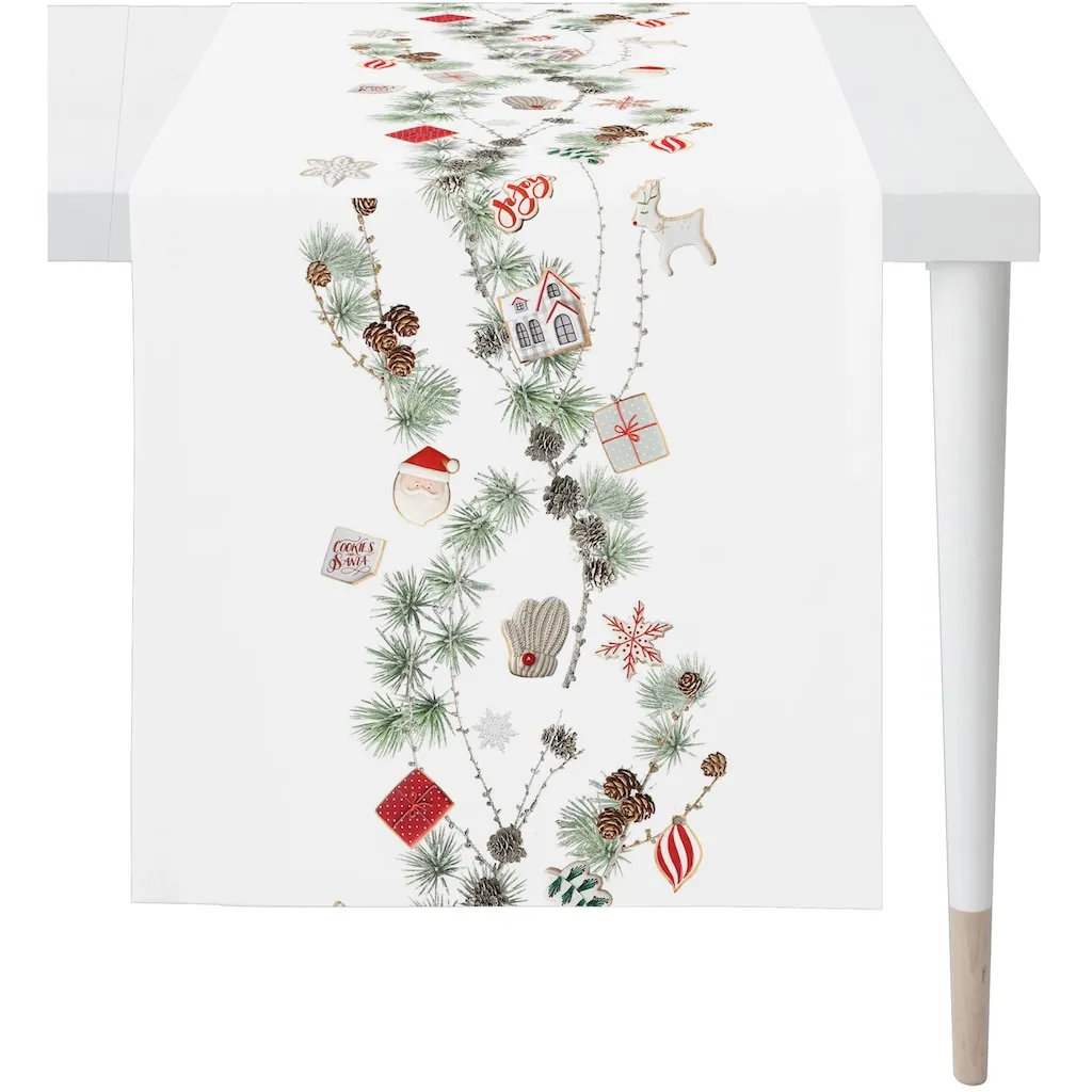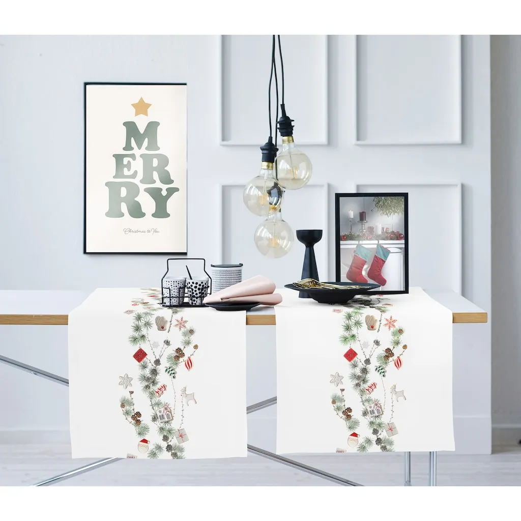 Зимний мотив с ветками лиственницы и рождественскими элементами, дорожка для стола, столовое белье, цифровая печать