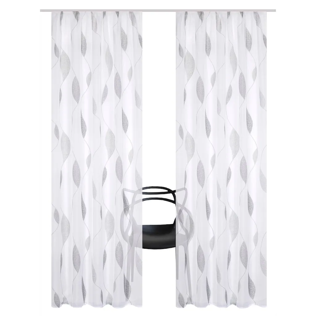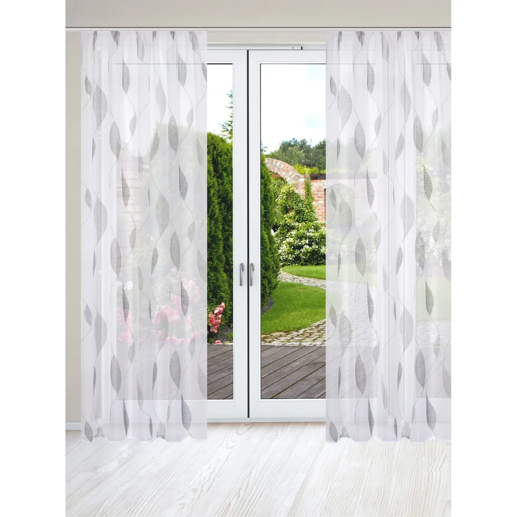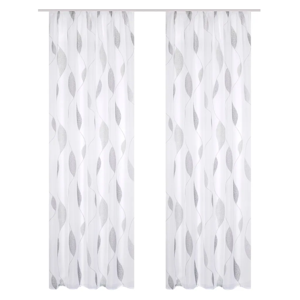 Набор из 2 декоративных занавесей. Из легкого прозрачного вуали с современным принтом. С тесьмой для сборки для подвешивания на карниз. 100% полиэстер. Можно стирать.