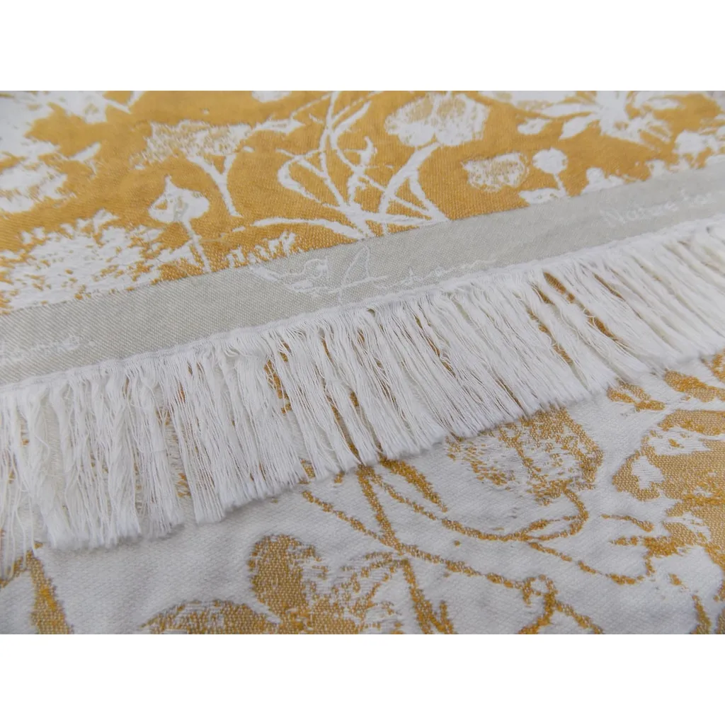 Внешний вид/Стиль Цветовое обозначение: карри Внешний вид: с узором Детали Отделка: бахрома Материал Состав материала: верхний Материал: 100% хлопок Материал: хлопок Плотность: 450 г/м² Наполнение: без наполнителя Размеры Ширина: 145 см Длина: 190 см Уход Рекомендации по уходу: машинная стирка при 30°C, подходит для сушки в сушильной машине Дополнительно Указания по цвету: обратите внимание, что цвета на вашем мониторе могут отличаться от оригинальных оттенков. Сертификат OEKO-TEX Standard 100, номер сертификата: коллективный сертификат 09.0.67812
