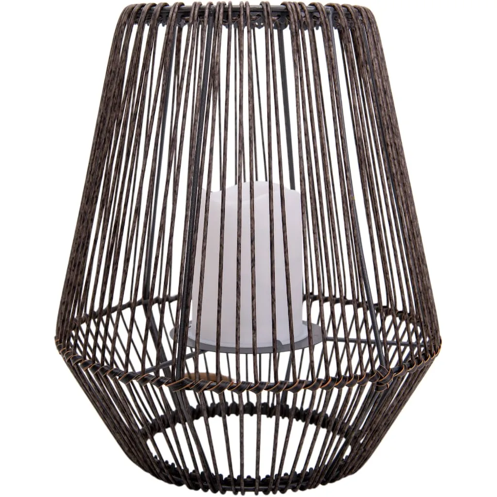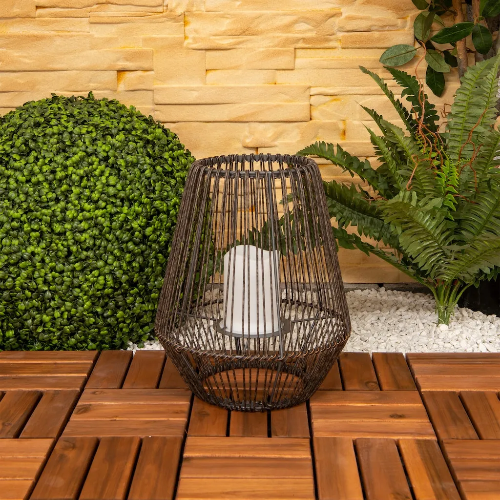 Эта привлекательная лампа с LED-свечой на солнечных батареях создаст декоративные акценты в вашем открытом пространстве. Лампа оснащена собственной солнечной панелью, которая питает встроенный светодиод экологически чистой солнечной энергией. Настольная лампа с эффектом корзины выполнена из коричневого металла. Солнечная лампа имеет высоту 30,5 см. Она может использоваться разнообразно и создает уютную атмосферу в вашем саду, на террасе или балконе. Лампа оснащена аккумулятором и удобным выключателем. Время работы при полной зарядке составляет до 6 часов.