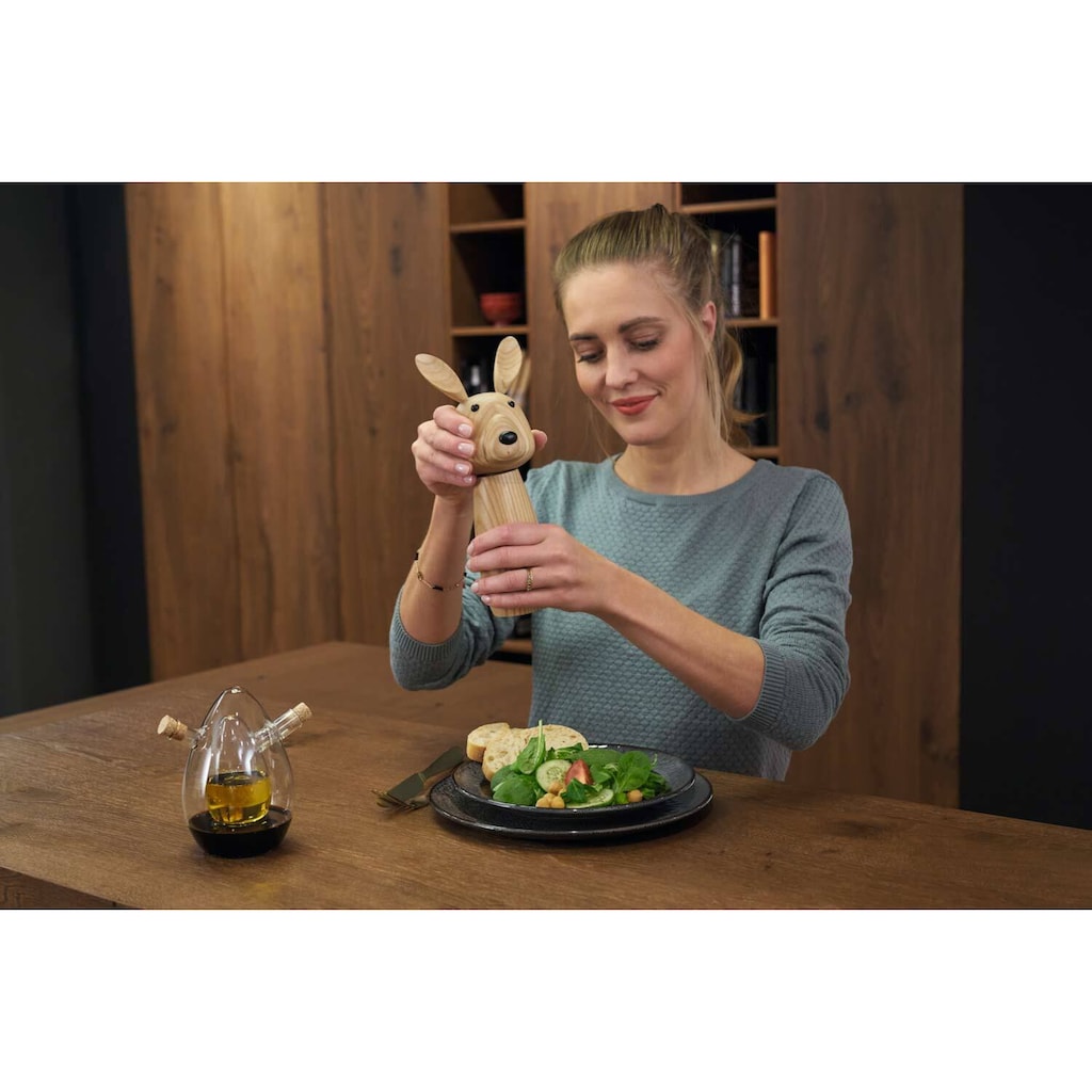 LEONARDO CUCINA Мельница для специй Заяц коричневый Создайте настоящий акцент на вашем столе с этой мельницей для специй! Эта мельница - обязательный аксессуар и привлекает внимание своим чувственным коричневым цветом. С тонким чувством прекрасного LEONARDO приносит еще больше разнообразия в вашу повседневную жизнь. Высококачественный керамический механизм, устойчивый к коррозии и износу, можно использовать для соли, перца и всех сухих специй. Мельницы удобно держать в руке, а их дизайн создает стильный декор на кухне. Почему откладывать? Не ждите долго, заказывайте прямо сейчас! Пользуйтесь этой практичной деревянной мельницей для специй. Размеры (ДxШxВ): 25,0 x 10,5 x 9,5 см Особенности: пригодно для контакта с пищевыми продуктами, мельница для специй из дерева, с керамическим механизмом Комплектация: 1 x мельница для специй Заяц