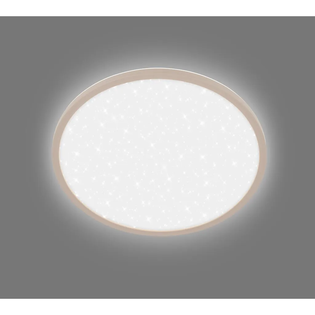 Плоская светодиодная панель бежевого цвета со звездным эффектом для жилых помещений, спален и коридоров, 22 Вт LED (3 000 лм, 4 000 К) обеспечивает нейтральный свет и чистую, приятную атмосферу, встроенный эффект подсветки для косвенного освещения и стильного оформления пространства, декоративная звездная крышка как стильный акцент для современных интерьеров, компактные размеры (Ø375x45 мм), идеально подходит для низких потолков и ненавязчивой интеграции