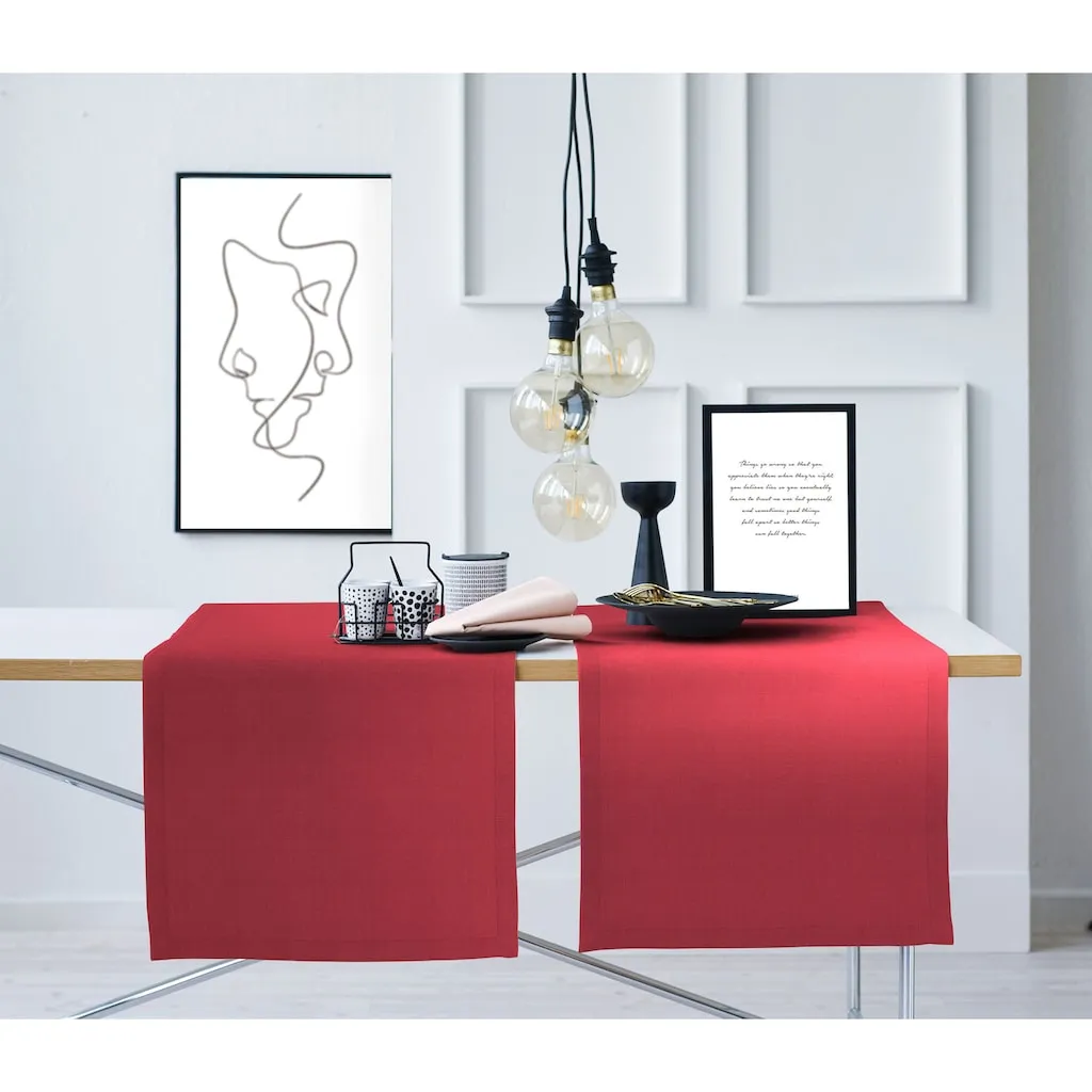 Дорожка на стол Arizona, Uni-Basic в льняной текстуре Apelt, красный