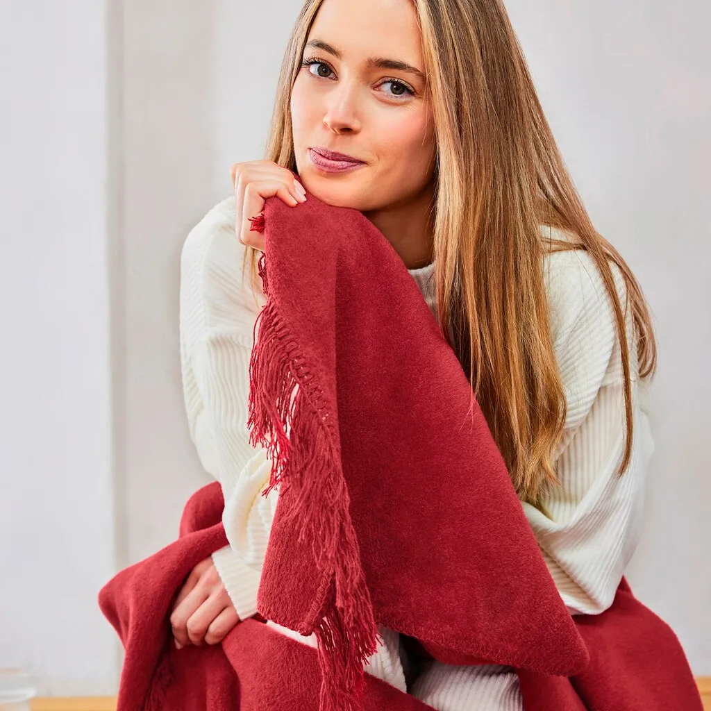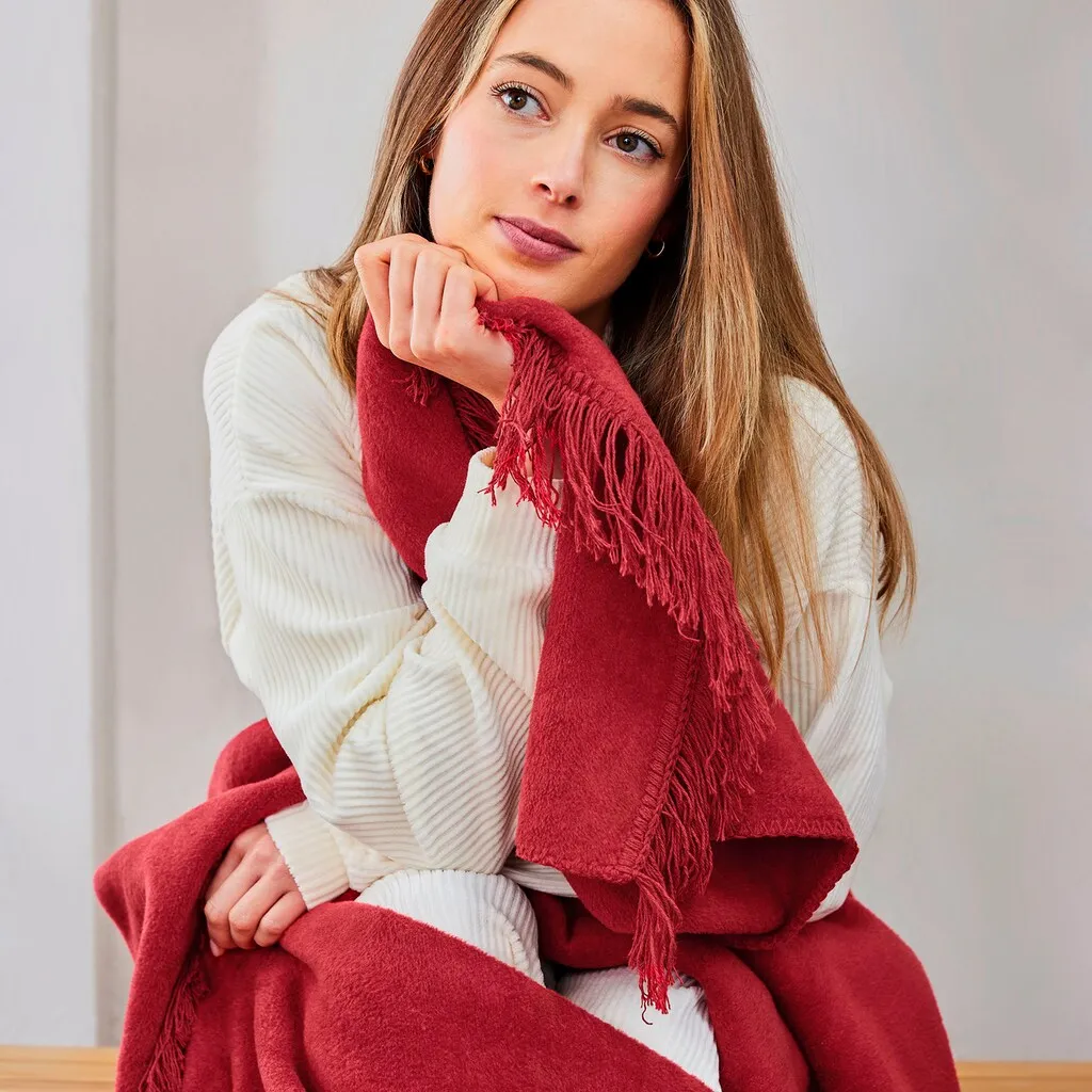 Плед Uni Decke Luxus 2 с бахромой Ibena, красный 5 376₽