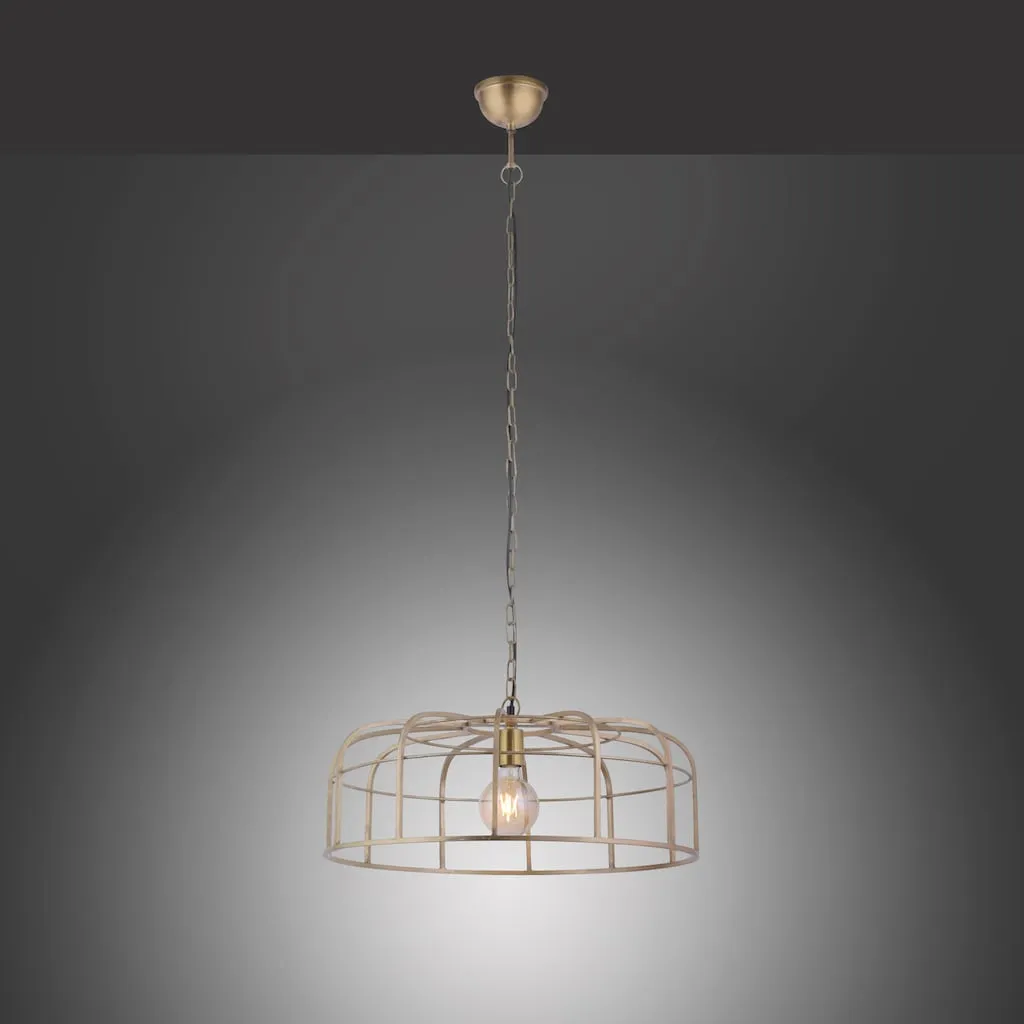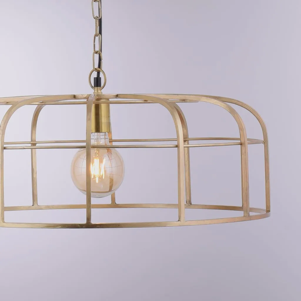 Подвесной светильник AMIR матового цвета из латуни в стиле клеточной конструкции с прямым обзором на лампу придает светильнику особый и впечатляющий вид. Лампа особенно эффектно смотрится благодаря отдельно стоящей патрону E27. От абажура идет цепь длиной 120 см, которая поддерживает довольно массивный светильник и визуально его завершает. Подвесной светильник привлекает все взгляды, будь то над обеденным столом или в гостиной, он украшает любое помещение. Диаметр лампы составляет 58 см, а длина подвеса - 120 см.
