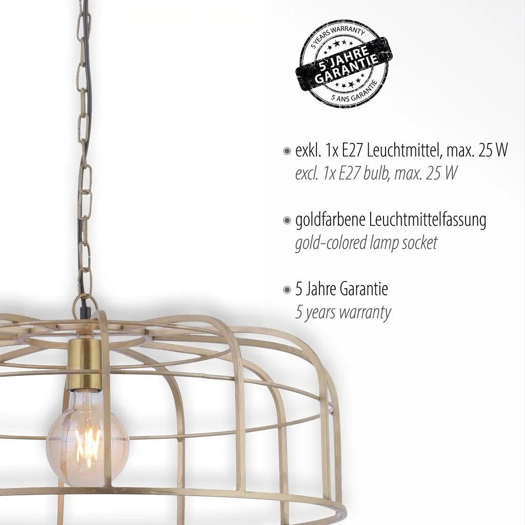 Подвесной светильник из матовой латуни с цепочным креплением, эксклюзивно 1 x лампочка E27 макс. 25 Вт, подходит для светодиодных ламп, 5 лет гарантии от производителя, индустриальный стиль