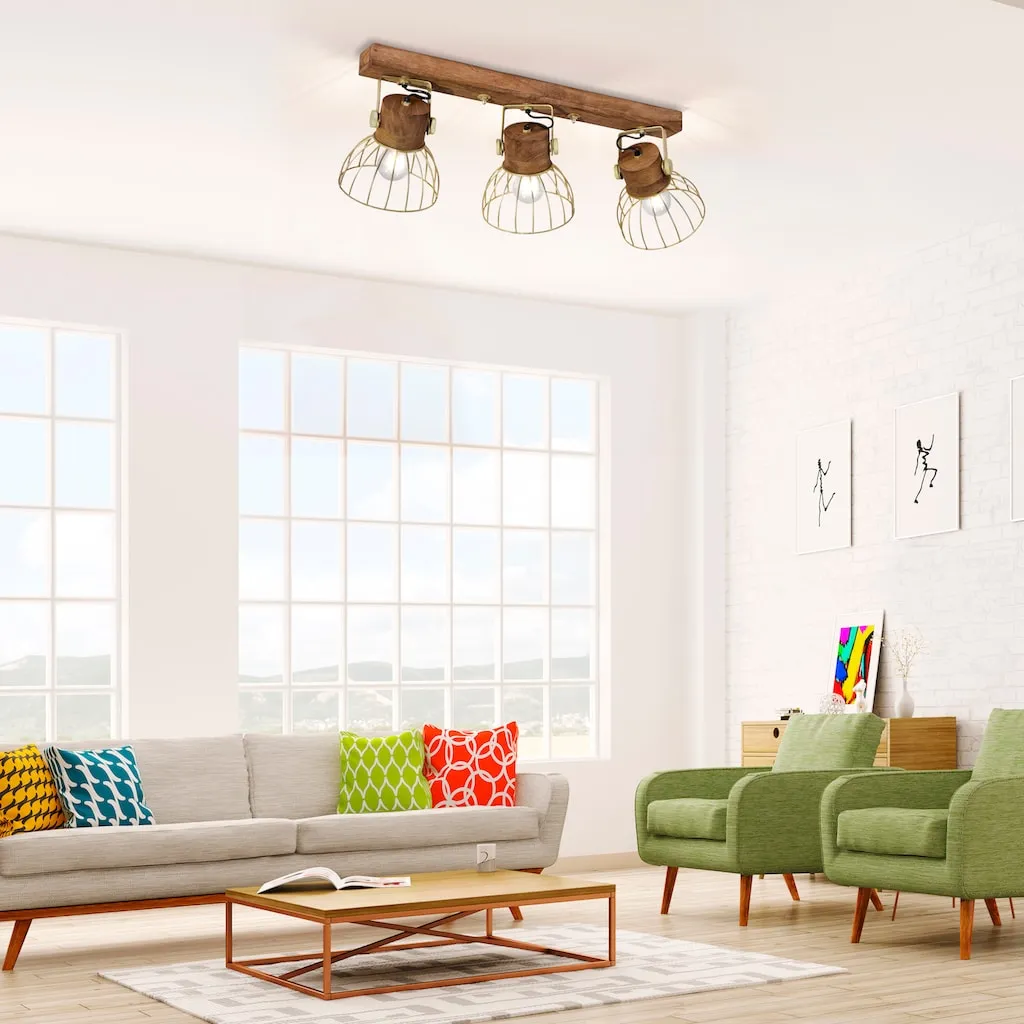 Трехрожковый настенный и потолочный светильник ALAMI представляет собой красивое сочетание древесины манго и матовых металлических элементов из латуни. Вы можете оснастить светильник тремя лампочками E27 мощностью до 25 Вт каждая. Сочетайте свой настенный светильник с любыми лампочками по вашему вкусу. Использование лампы с нитью накала позволяет визуально улучшить внешний вид светильника. Поворотные и наклонные головки потолочного светильника можно регулировать и направлять по желанию. ALAMI в модном индустриальном стиле особенно хорошо смотрится в гостиной и спальне, но также может использоваться в других помещениях. Благодаря решетке на металлическом абажуре настенный и потолочный светильник создает отличную игру света. Размеры светильника составляют: длина 76 см, ширина 31 см, подвес 20-28 см.