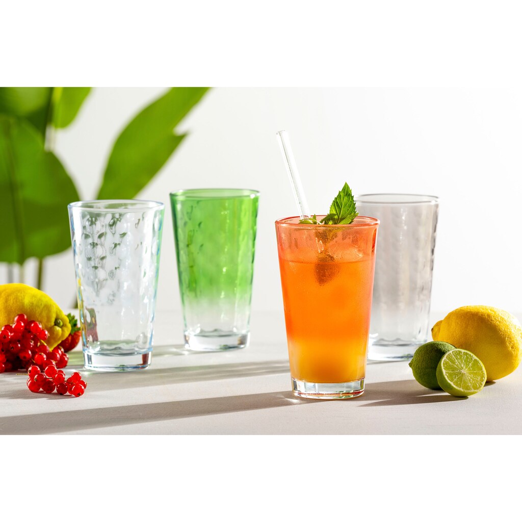 Набор высоких стаканов, идеален для повседневного использования, пригоден для контакта с пищевыми продуктами, можно мыть в посудомоечной машине, высокое качество благодаря Colori, с трехмерной отделкой на стекле