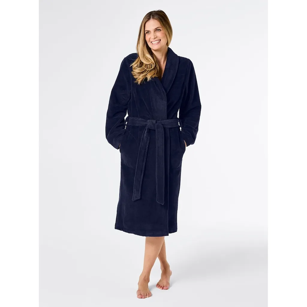 Особенно мягкий, высококачественный велюровый! Роскошный халат от CaWö с приятным к носке шалевым воротником, петлями для пояса и поясом. Боковые карманы. Удобная внутренняя сторона из хлопка. Состав: 80% хлопок, 20% полиэстер.